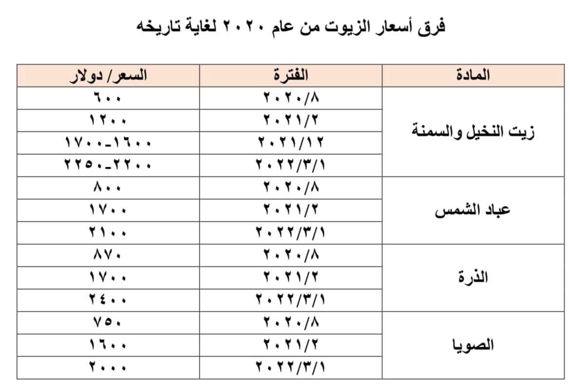 في الصورة المرفقة استعراض للارتفاعات التي طرأت على اسعار الزيوت النباتية واصل ميناء العقبة خلال عام ونصف تقريبا .غر