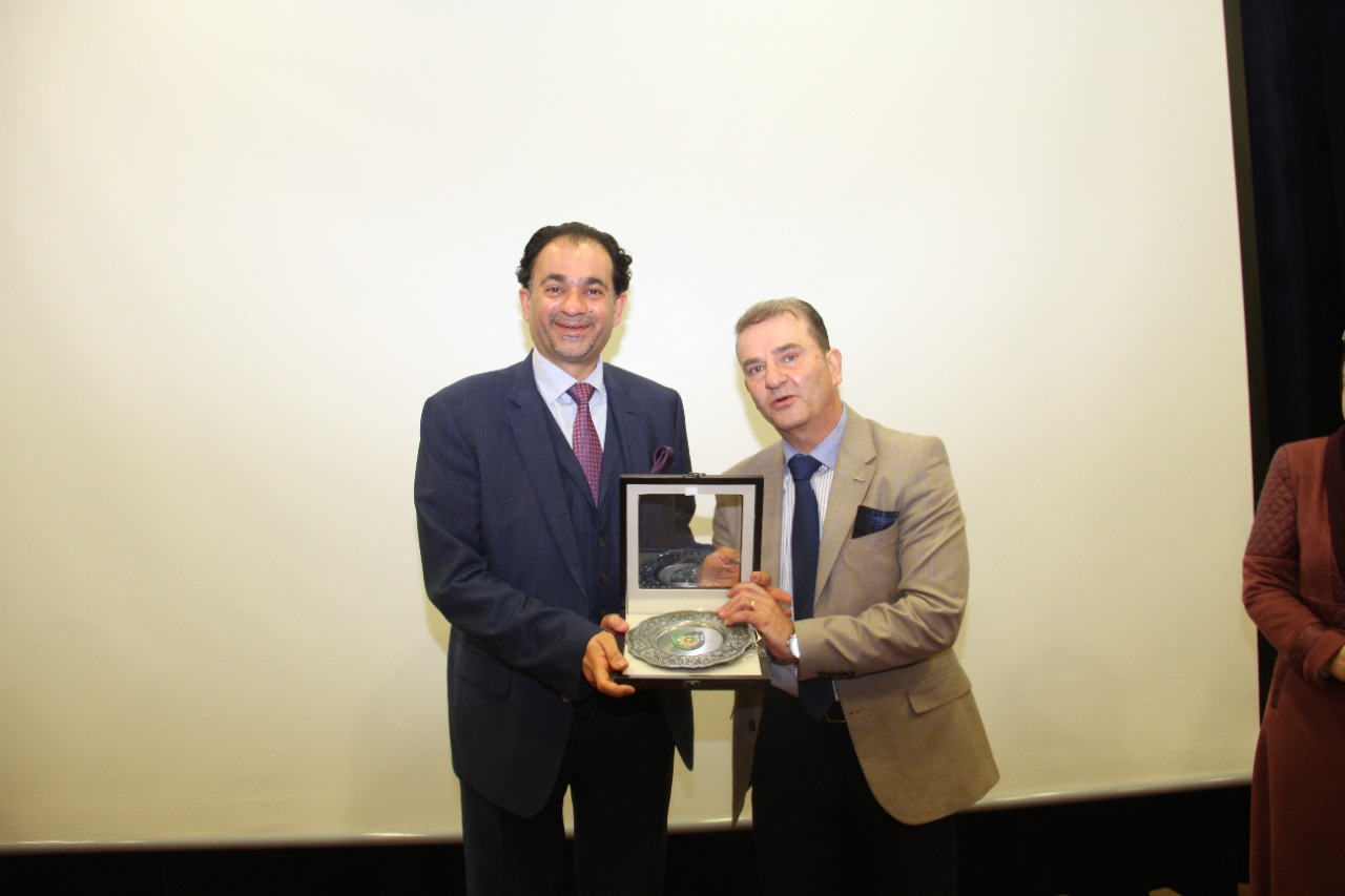 وفي ختام الاحتفالية سلم الدكتور الكلوب درع الجامعة للجازي وزهراب لتفضلهما بإثراء الاحتفالية بمعلومات وصور قيمة عن الكرامة والام معا .