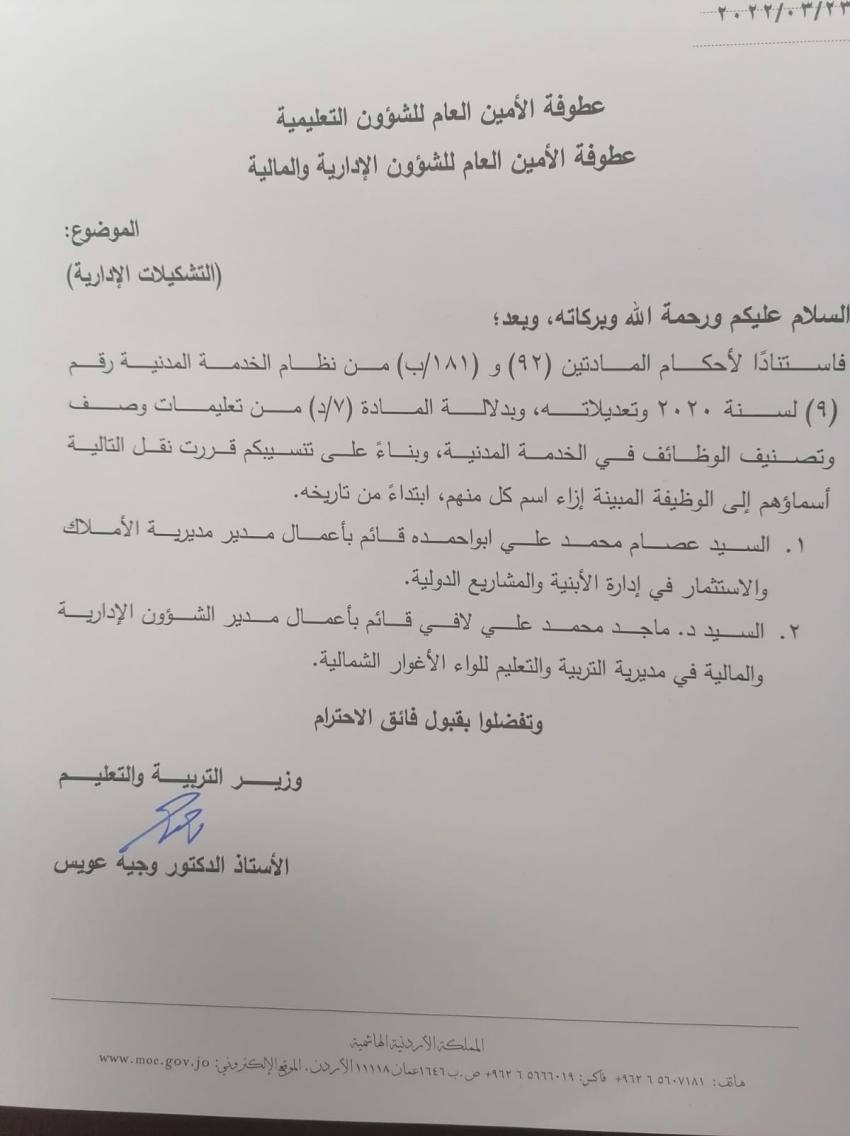 تشكيلات إدارية في وزارة التربية (أسماء)