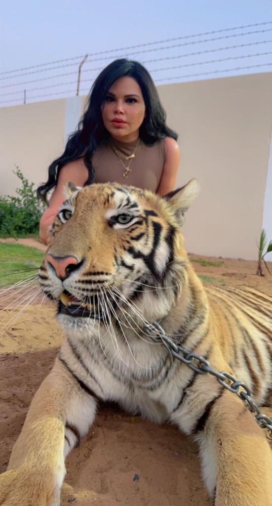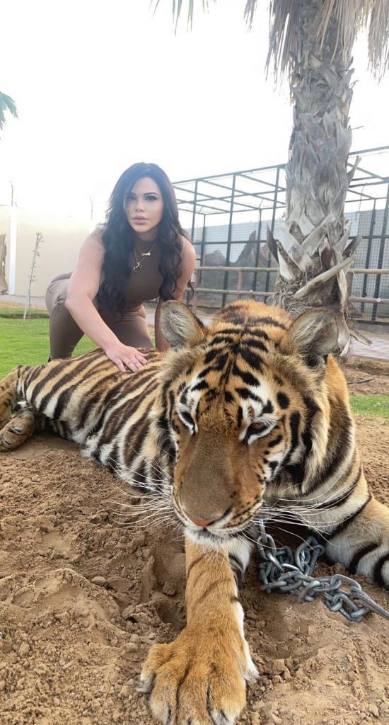 الناشطة الاردنية لارا العبداللات تداعب نمورا وأسودا.. صور