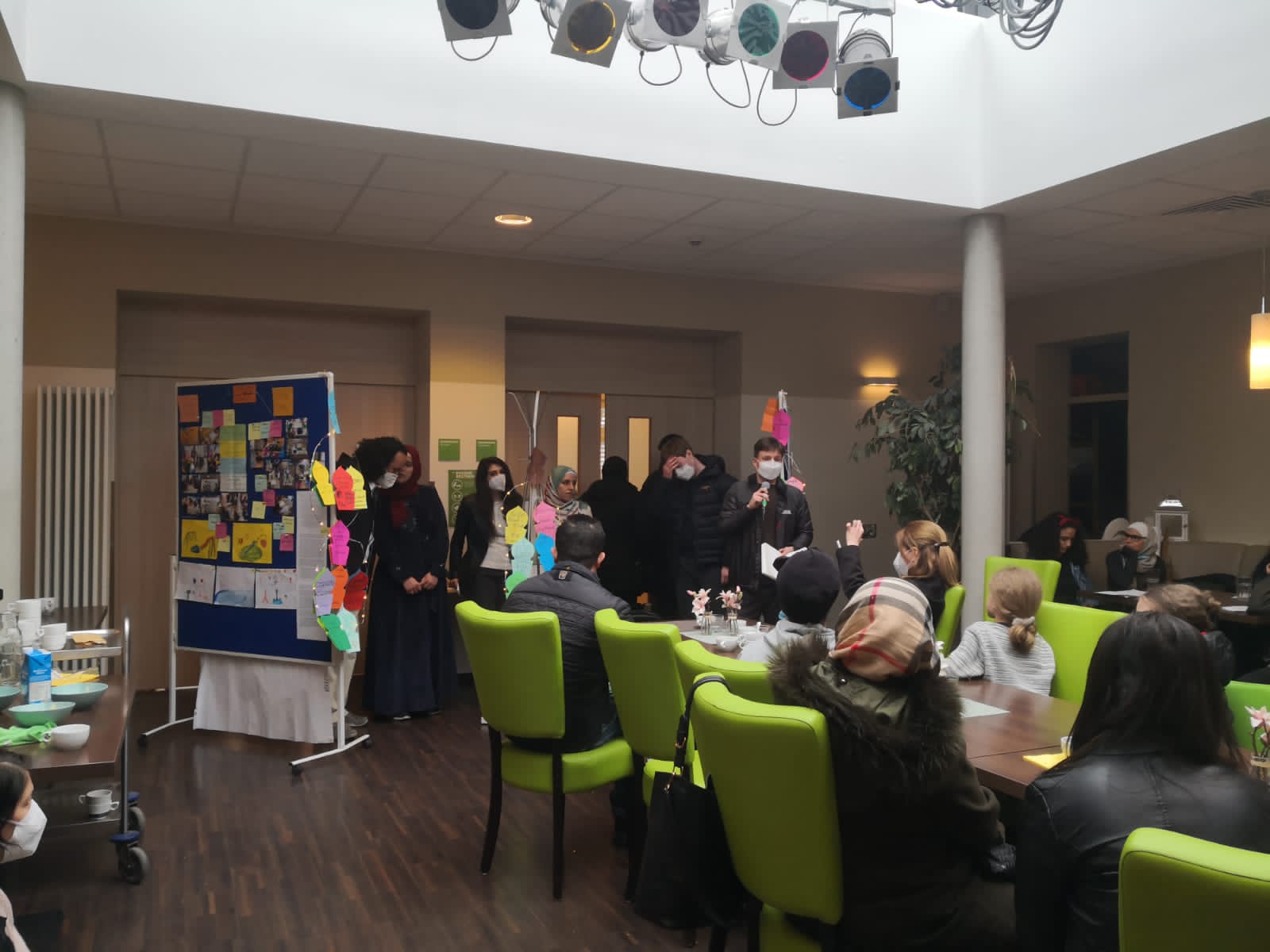 أمين عام الهيئة الأردنية الأوروبية العليا أ. مازن ابو زبيد رحب بالوفد المشارك برئاسة د. آيات نشوان ورافقهم خلال الورشة التي اشتملت على حوارات ونقاشات ومقابلة الجيران في الحي البرليني واسهامات لتجميل الحي والعاب وانشطة مختلفة مع اطفال المنطقة لاقت اعجابا واقبالا وحضورا ملفتا.