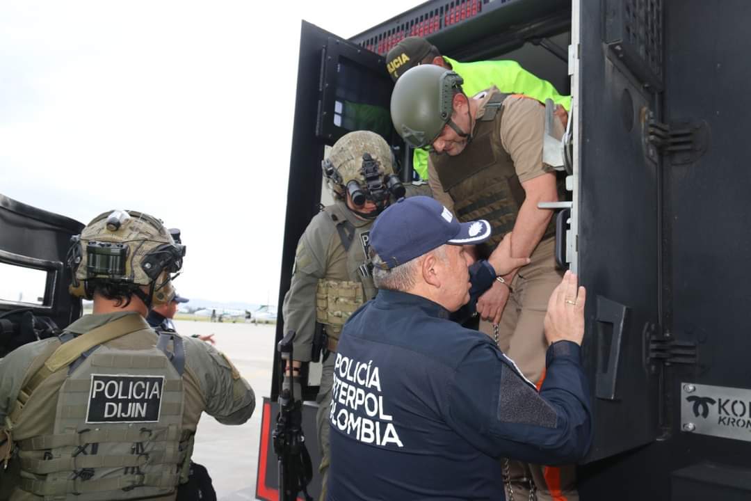 وبثّت وسائل إعلام محلية صوراً لقافلة كبيرة من العربات المدرّعة يواكبها عناصر شرطة مسلحون متوجهة إلى مطار بوغوتا. كما نشرت الرئاسة صورا لـ”أوتونييل” مكبل اليدين يرتدي معطفا رماديا على متن طائرة قبل وقت قصير من إقلاعها.