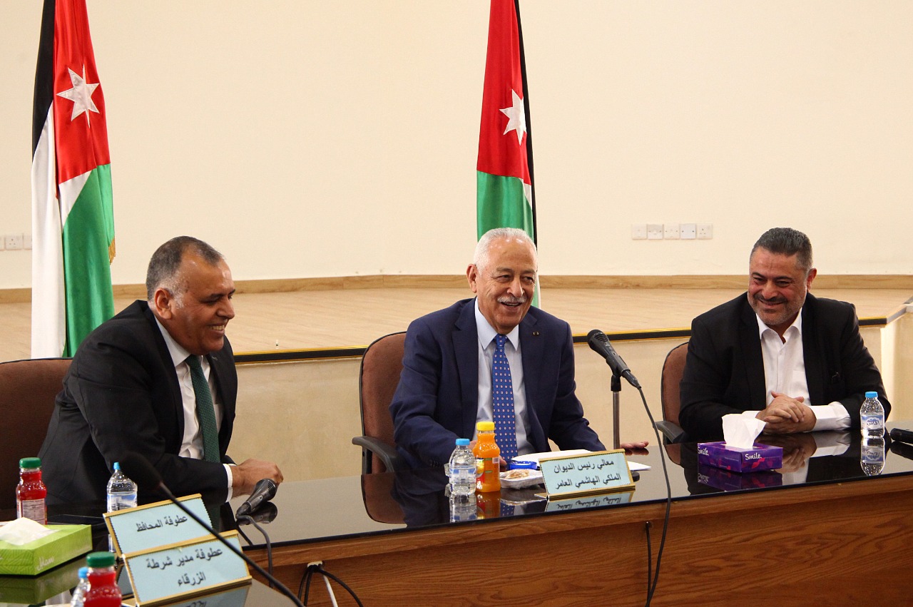 التقى معالي رئيس الديوان الملكي الهاشمي العامر معالي"يوسف العيسوي" رئيس واعضاء مجلس بلدية محافظة الزرقاء وتسلم وثيقة الشرف الموقعة من قبل المواطنين والمتضمنة تجديد البيعة والولاء والانتماء في محافظة الزرقاء الاحد 5-6-2022