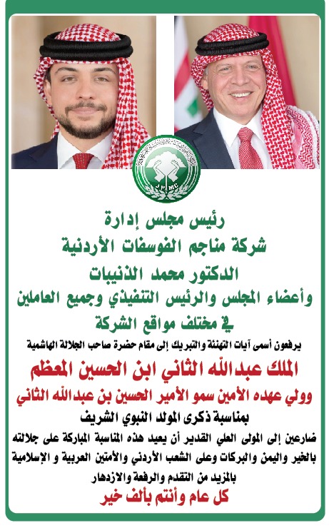شركة الفوسفات تهنئ بذكرى المولد النبوي الشريف