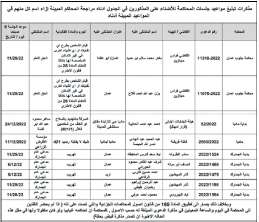 أمهلت محاكم متهمين، 10 أيام من تاريخه، لتسليم أنفسهم للسلطات القضائية المختصة لمحاكمتهم على التهم المسندة إليهم، وإلا سيتم اعتبارهم فارين من وجه العدالة، وتوضع أموالهم تحت إدارة الحكومة ويحرمون من التصرف بها ويمنعون من إقامة أية دعاوى ويعتبر كل تصرف يقومون به أو التزام يتعهدون به بعد ذلك باطلا.