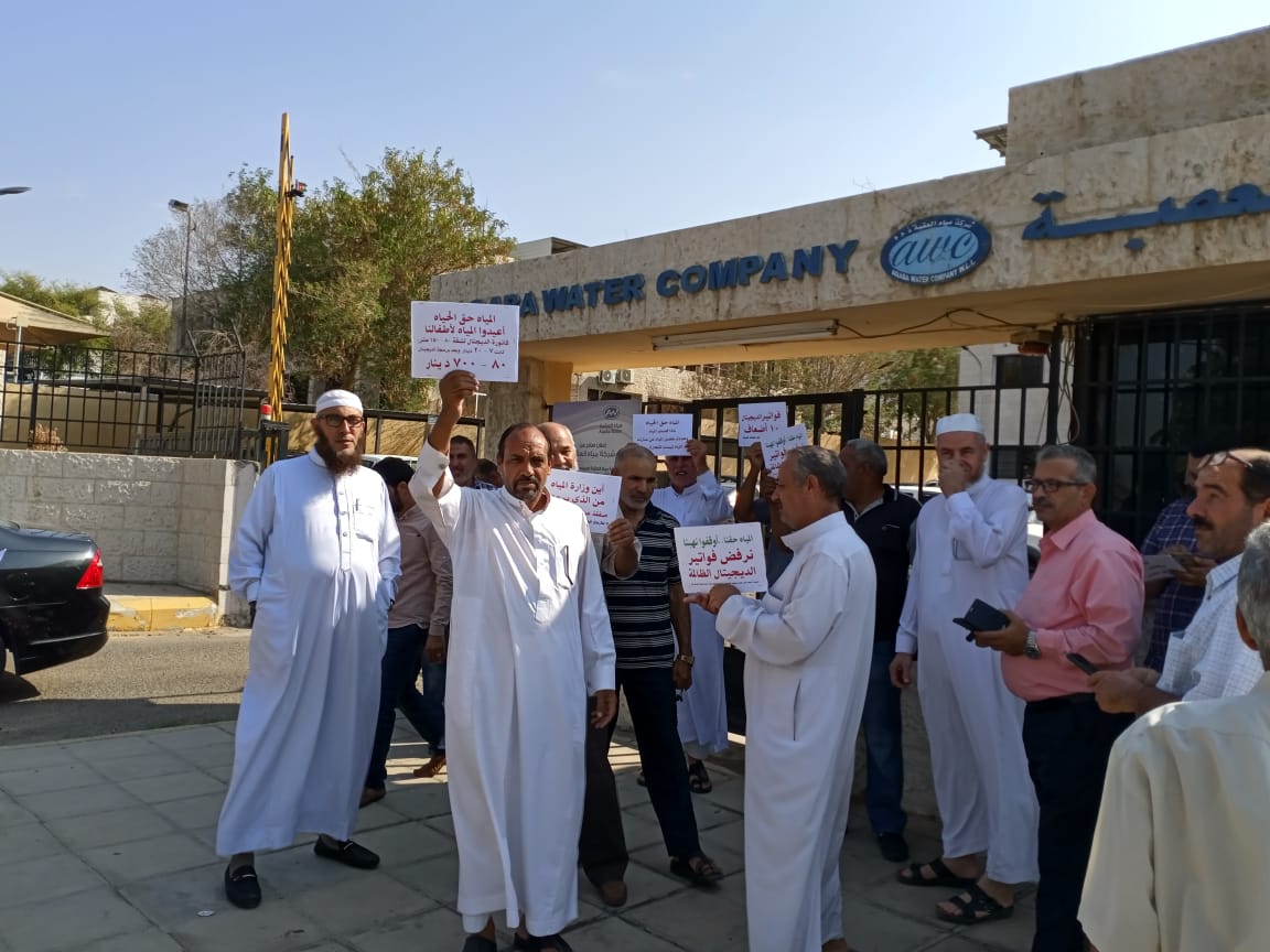 اعتصام سكان العقبة أمام شركة مياه العقبة احتجاجا على فوترة العدادات الدجيتال التي ضاعفت القيم لأكثر من خمس أضعاف