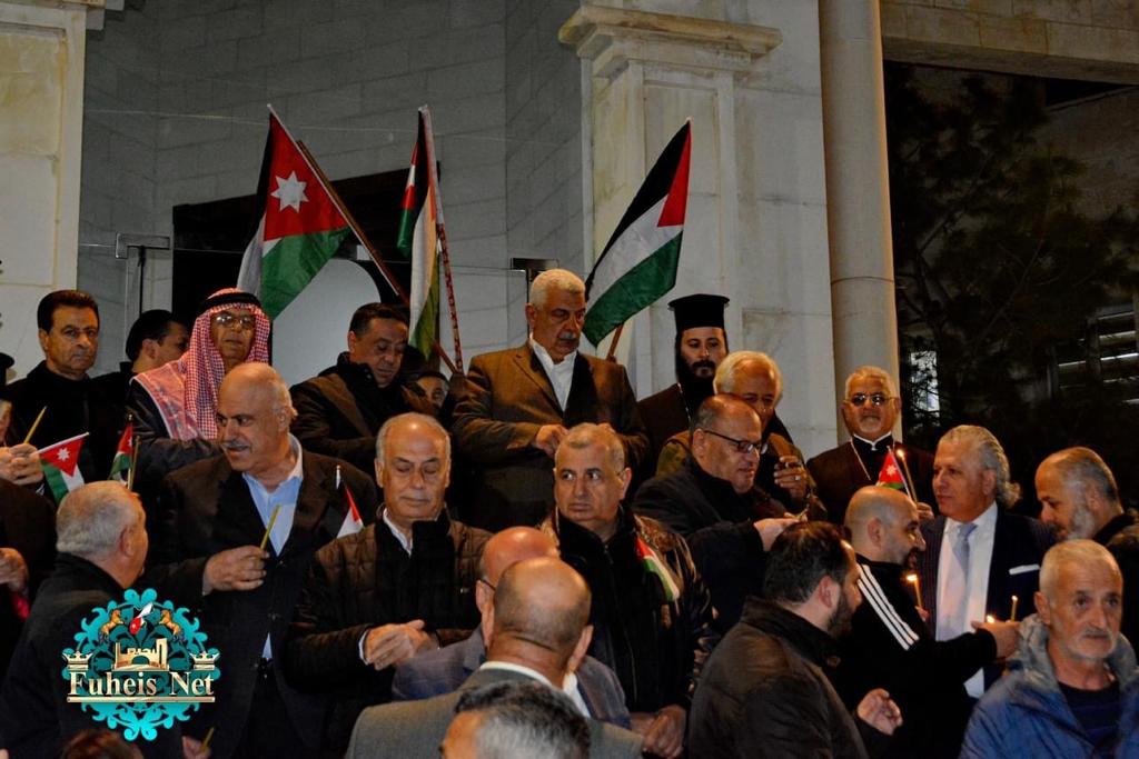 شارك اهالي وابناء ومؤسسات المجتمع المدني والجمعيات الخيرية والعشائرية في مدينة الفحيص / محافظة البلقاء في وقفة تضامنية بدعوة من المجلس البلدي للوقوف صفا واحدا الى جانب والوطن وقيادته واجهزته الامنية ضد الاعمال الاجرامية الهجينة على مجتمعنا مستنكرين الاعمال الارهابية الدخيله والتي ادت الى استشهاد اربعه من خيرة ابناء الامن العام همهم الوحيد حفظ امن واستقرار الوطن