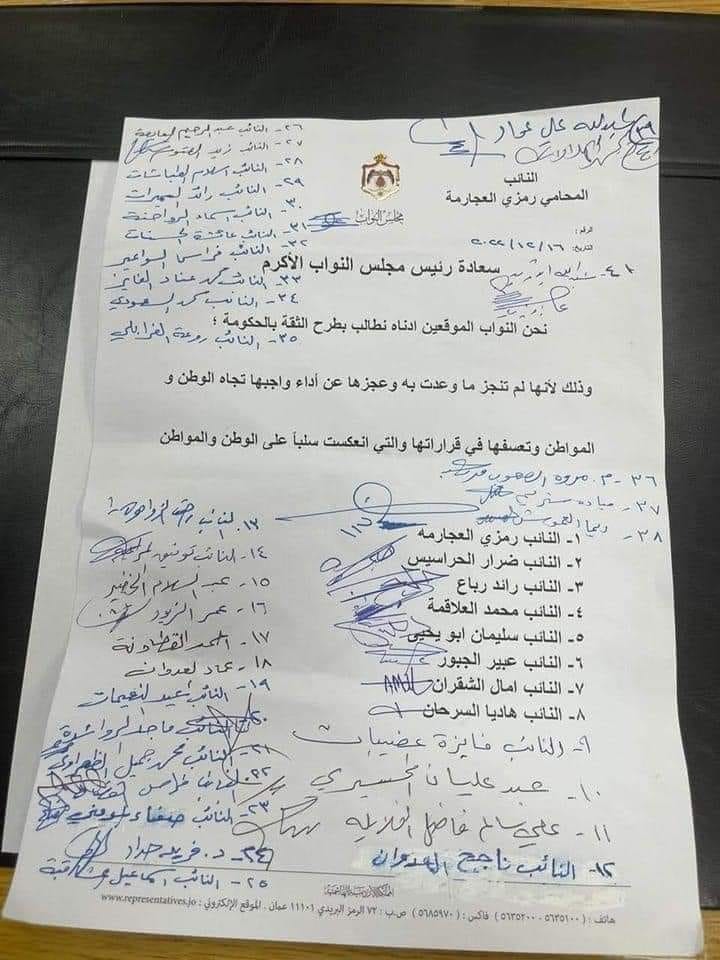 أسماء النواب الموقعين على مذكرة حجب الثقة عن الحكومة