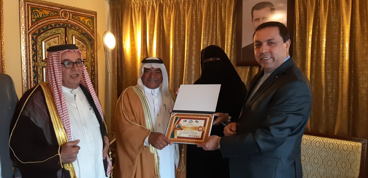 استقبل سعادة الدكتور شفيق ديوب القائم بأعمال سفارة الجمهورية العربية السورية في عمان بمكتبه ظهر اليوم وفدا عشائريا من رابطة صقور الاردن للإصلاح العشائري .