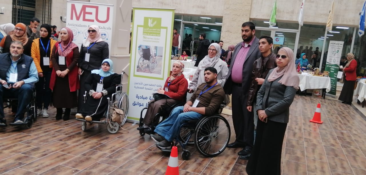 ضمن نشاطات المركز الخاصة باليوم العالمي للأشخاص ذوي الإعاقة والذي يصادف 3/12 من كل عام ، شارك المركز السعودي لتأهيل و تدريب الكفيفات بالأردن ممثلا بمديرته الأستاذة إيناس الطائفي يرافقها مسؤولة العلاقات العامةومجموعة من معلمات وطالبات المركز في فعاليات المبادرةالتي نظمتها لجنة مبادرة ( أردن بلا عوائق ) في جامعة الشرق الأوسط ، حيث قدم معلمات المركز شرح تفصيلي لطلاب وطالبات الجامعة حول (كيفية الكتابة بطريقة برايل - التعريف بأهمية العصا البيضاء وأنواعها وكيفية استخدامها) بالإضافة للتعريف بفن اتيكيت التعامل مع المكفوفين وفن الحركة والتنقل ،