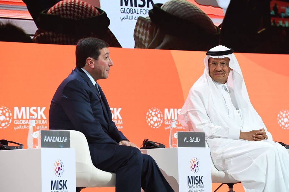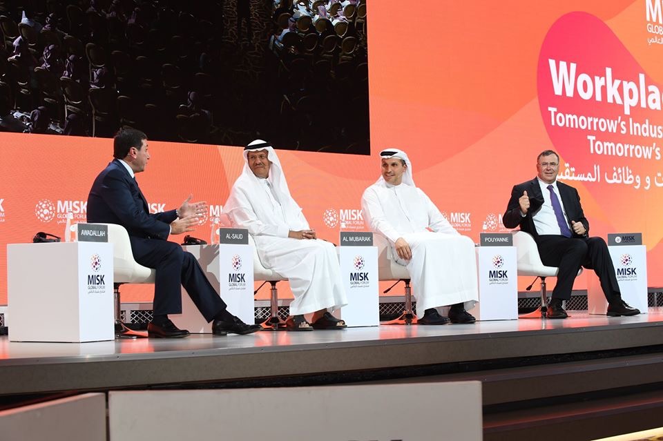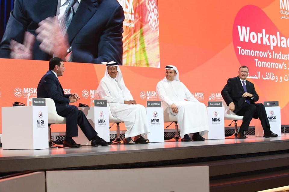 ، خلال مشاركتي في الجلسة الافتتاحية لمنتدى مسك العالمي الرابع ، بمعية سمو الأمير عبد العزيز بن سلمان أل سعود، وزير الطاقة في المملكة العربية السعودية ، ومعالي الأخ خلدون خليفة احمد المبارك، عضو المجلس التنفيذي لإمارة أبوظبي وجهاز الشؤون التنفيذية في الإمارة والرئيس التنفيذي لشركة مبادلة، والسيد باتريك بويانية، رئيس مجلس الادارة والمدير التنفيذي لشركة توتال الفرنسية.