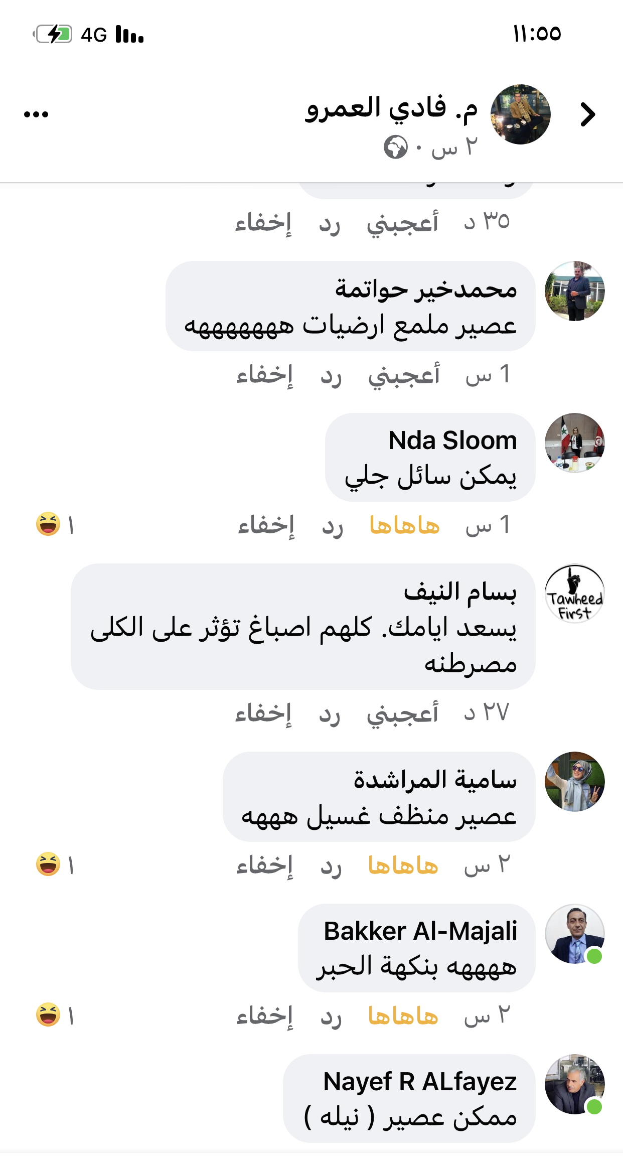 مبارح وصلتني من صديق كان جاي يفطر عندي بقلي اي الوان بدك…..قلتله لا تجي لا انت ولا معطر الغسيل اللي معك….هسا السؤال …الازرق هذا شو نكهته. والميه مشان الرغوه…انا الصديق حذفته من عندي مبدئيا