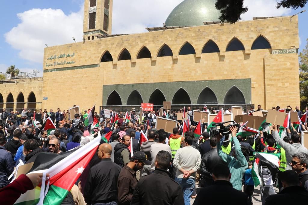 وأكدوا أن قضية القدس قضية عقدية والاقصى معركة أمة وكرامة والوصاية الهاشمية حق وسنبقى في الأردن شوكة في حلق إسرائيل ونقاوم خلف قيادة جلالة الملك عبدالله الثاني تجاه فلسطين والمقدسات.