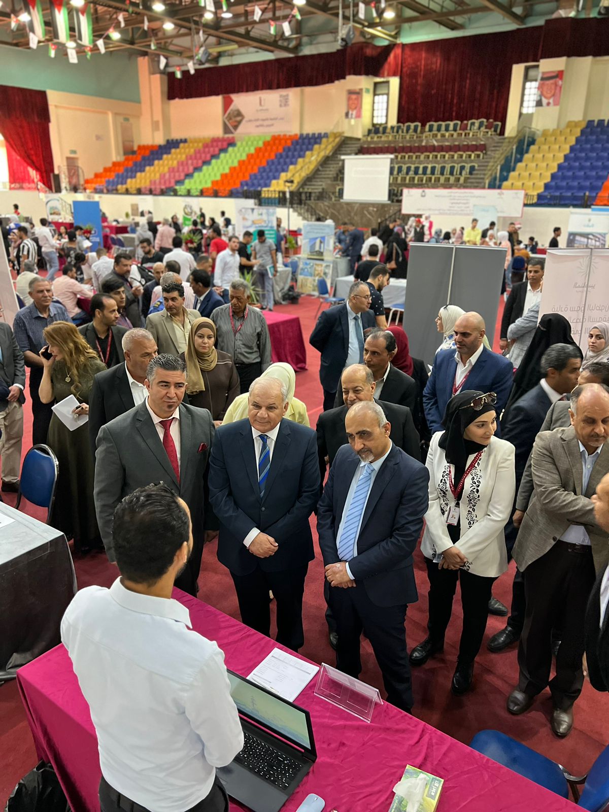 وذلك بحضور معالي الأستاذ الدكتور محمد موسى حامد رئيس الجامعة وعمداء الكليات وعدد من أعضاء الهيئتين التدريسية والإدارية، ومدير مديرة عمل عمان الرابعة / الجيزة الدكتور هايل الزبن بالإضافة إلى مندوبي (59) شركة من القطاعات الصناعية والتجارية والصحية والتعليمية والسياحية والإتصالات ، حيث يستمر على مدى يومي (الثلاثاء والأربعاء) من الساعة العاشرة صباحاً وحتى الساعة الثالثة عصراً.