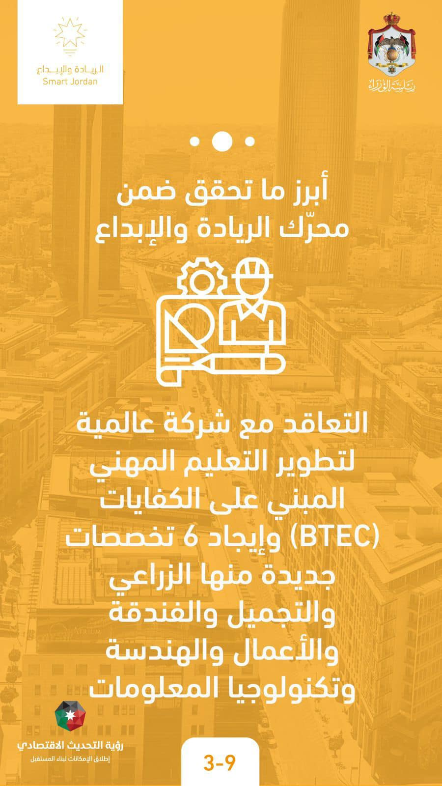 تم استحداث 6 تخصصات بهدف تطوير التعليم المهني المبني على الكفايات (BTEC) مثل الهندسة وتكنولوجيا المعلومات.