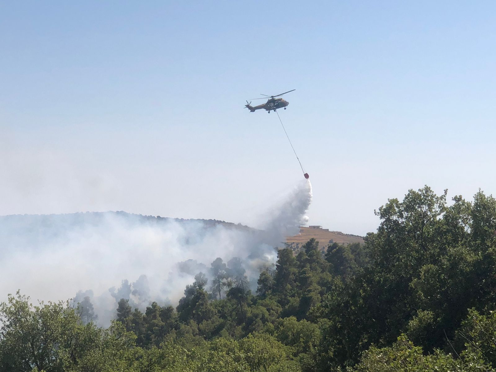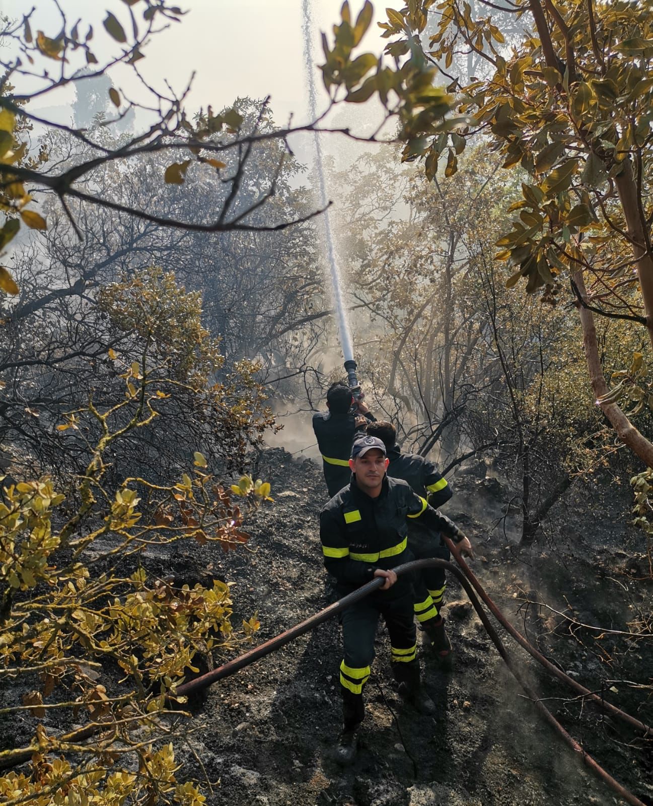 *جهود كبيرة بذلتها فرق الإطفاء في عمليات المكافحة نظرا لوعورة المنطقة وارتفاع درجات الحرارة واستمرت لساعات متواصلة