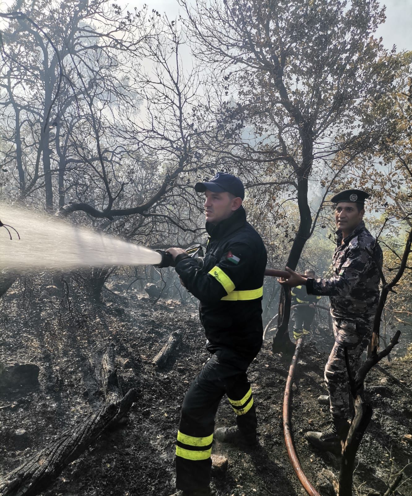 *شارك في عمليات إخماد الحريق ما يزيد عن (100) آلية عمليات مختلفة بالإضافة إلى ثلاث طائرات من سلاح الجو الملكي وما يزيد عن (500)مشارك من مرتبات جهاز الأمن العام بكافة تشكيلاته