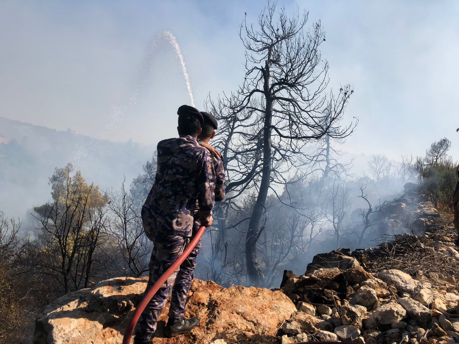 وشارك في عمليات إخماد الحريق ما يزيد عن مائة الية عمليات مختلفة من إطفاء واسعاف ومنصات إطفاء ولودرات وتنكات تزويد وابراج اطفاء وجرارات زراعية بالاضافة الى ثلاث طائرات من سلاح الجو الملكي وما يزيد عن (500) مشارك من مرتبات جهاز الأمن العام بكافة تشكيلاته.