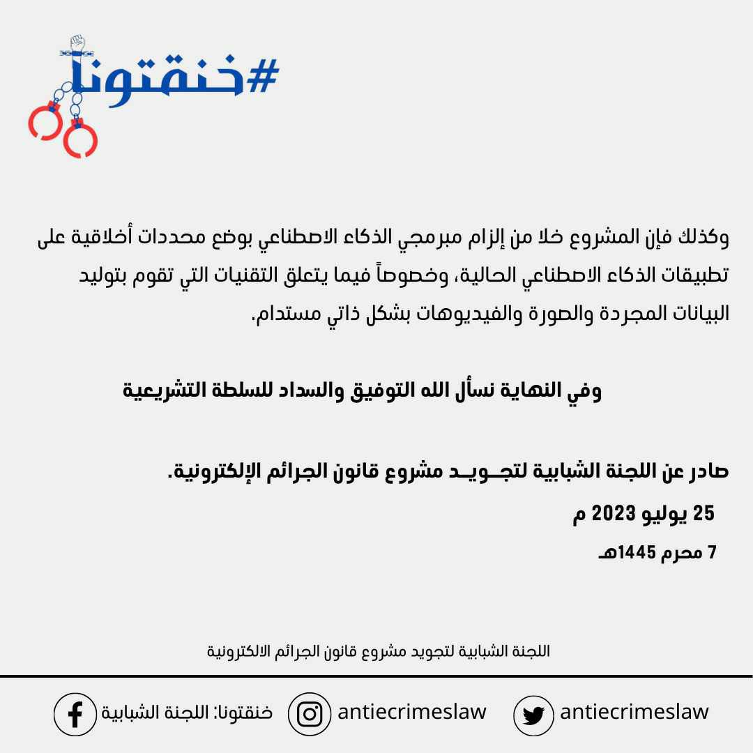 حملة خنقتونا: اللجنة الشبابية لتجويد مشروع قانون الجرائم الالكترونية.