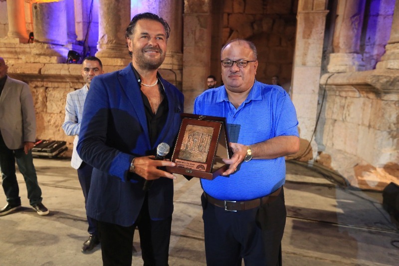 وفي نهاية الحفله كرم مدير مهرجان جرش أيمن سماوي بتكريم الفنان راغب علامة والفنان حسين السلمان .