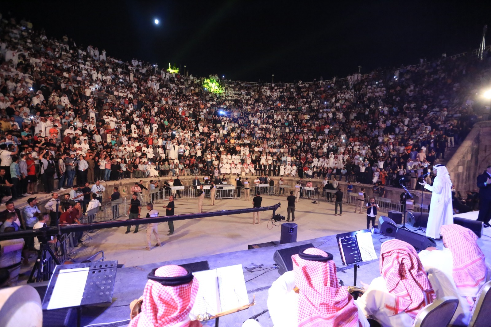 وامتلأت مدرجات الأدويون بالجمهور قبل بداية الحفل ليشعل الربيحات المسرح بأغنية "ردي شعراتك.. ردة على ردة" ومرعية يا البنت، وحببني على الخدين شو الجسارة، من الفلكور الأردني.