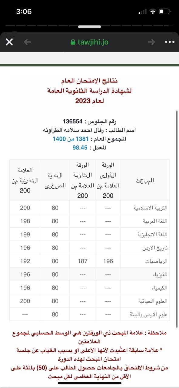 رفال احمد الطراونة تجتاز التوجيهي العلمي بمعدل 98.5 الفرع العلمي .