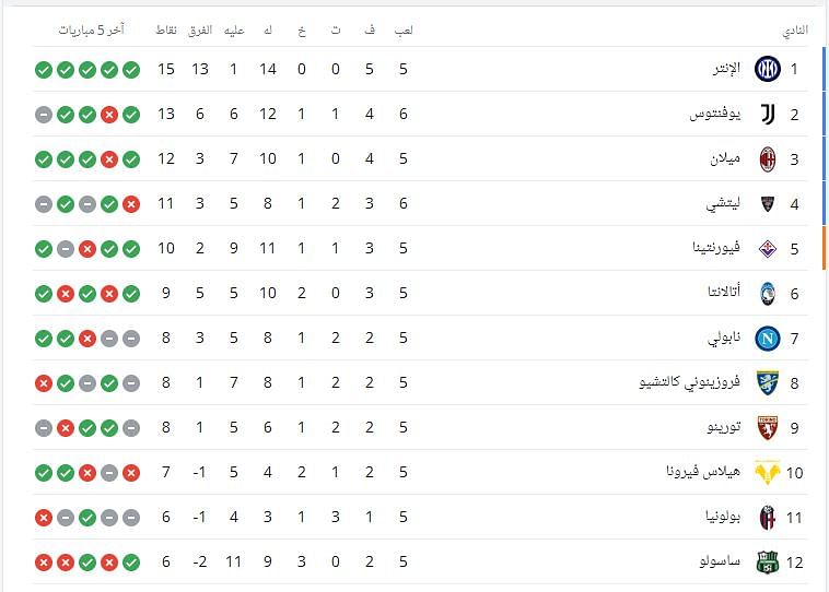 ترتيب الدوري الإيطالي بعد فوز يوفنتوس