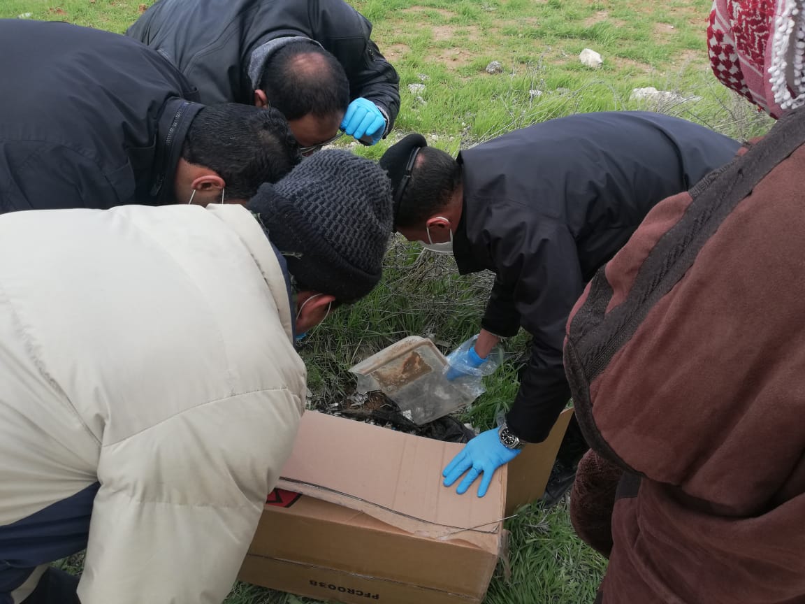 الاجهزه الأمنية تتحفظ على مستهلكات طبية مستعمله ملقاه على قارعة الطريق