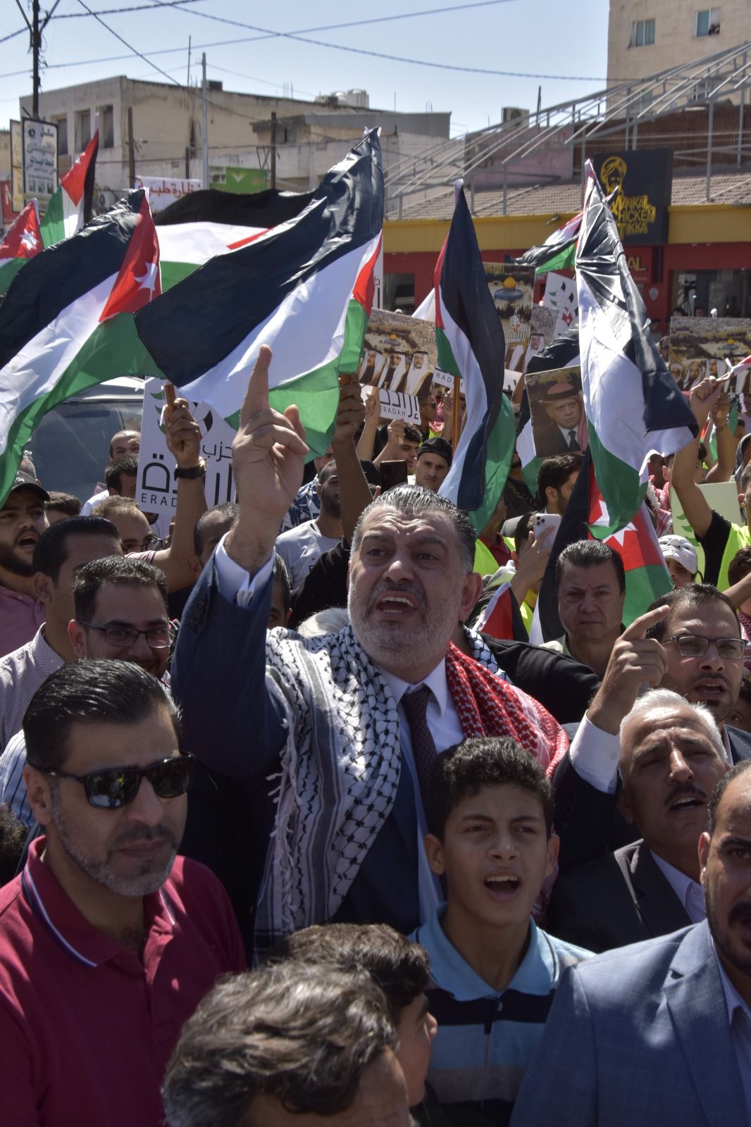 وخاطب البطاينة الحشود "اليوم يومكم لتصل أصوات حناجركم الى أهلنا الصامدين المرابطين الأبطال في غزة العزة والبطولة وفي كل شبر من تراب فلسطين الطهور، أن لهم في الأردن ظهيراً وسنداً يتوحد معهم في الدم وفي المصير".