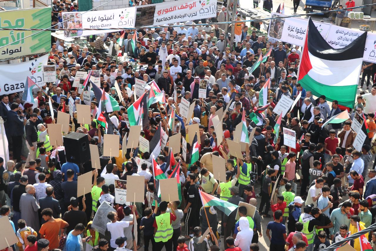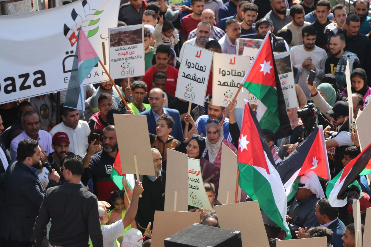 نفذ حزب إرادة والذي يظهر حراكاً نشطاً خلال حرب غزة بعد صلاة الجمعة اليوم في مخيم جرش ( مخيم غزة ) وقفة تضامنية مع الاشقاء الفلسطينيين الذين يواجهون عدواناً مستعراً منذ اكثر من أربعين يوما ً وتأييداً لمواقف الأردن الداعمة للأشقاء والمطالبة بوقف اطلاق النار.وقال الأمين العام لحزب إرادة نضال البطاينة في كلمة له وسط الحشود " لله درك يا غزة التي قطعت عنك كل شرايين الحياة، والموت لإسرائيل الذين يستغلوا الغطاء الغير مسبوق من الولايات المتحدة، وعاشت غزة وفلسطين والأردن حرة ابية.وأضاف ان جلالة الملك قالها اذا تركنا نحن في الأردن وفلسطين وحدنا وها نحن نترك وحيدون لن يهنأ العرب والعالم بالامن والسلام حتى ينال الشعب الفلسطيني حقوقه الكاملة على ترابه .وحيا البطاينة قرارات الأردن بقيادة جلالة الملك بوقف التوقيع على اتفاقية الطاقة مقابل المياه وعدم عودة سفير الكيان الصهيوني وسحب سفيرنا وقرار ارسال مستشفى ميداني الى نابلس الى جانب مستشفى غزة ومركزين للعمليات. وشدد ان فلسطين والأردن وجهان لعملة واحدة واليوم كلنا فلسطينيون لان البوصلة فلسطين وكلنا اردنيون لان الأردن في عين العاصفة.واكد رئيس فرع حزب إرادة في محافظة جرش الباشا محمد فرغل دعم صمود الاشقاء في غزة وفلسطين في مواجهة هذا العدوان المستمر بكل ما نستطيع متعهداً امام الله اننا مستعدون ان نضحي بارواحنا من اجل الأردن وفلسطين مستنكرا جرائم الإبادة الجماعية ضد الاهل في غزة والمواقف الغربية الداعمة للعدوان على غزة.ودعا الى الوقوف الى صف الموقف الأردني الداعم للاشقاء بقيادة جلالة الملك عبدالله الثاني المعظم للتخفيف عن الاشقاء ووقف العدوان الصهيومي مشددا أهمية تقديم كل اشكال الدعم للاشقاء في غزة بكل ما نستطيع.وحيا رئيس المجلس الوطني لحزب إرادة خميس عطية صمود غزة بشيوخها واطفالها ونسائها واطفالها ورجاله ومقاومتها الصامدة وشهدائها وجرحاها الذين علمونا معنى التضحية والفداء والصبر على الشدائد فغزة اليوم تعاني بفعل آلة الاجرام الصهيوني المدعومة أمريكيا فالادارة الامريكية شريكة بالعدوان على اطفال ونساء غزة ومستشفيات غزة . وأضاف ان غزة اسقطت الانسانية والادعاءات الغربية بحقوق الانسان والقانون الدولي، داعيا الى محاكمة قادة الصهاينة امام محكمة الجنايات الدولية، مؤكدا ان حضور هذه الحشود هذه الفعالية دعما للاهل في غزة فنحن مع غزة ولا نتضامن معم فقط بل نحن في خندق غزة ضد الصهاينة ولن نتركها وحيدة ونصرتها واجب ديني. ووجهت النائب فايزة عضيبات التحية لصمود الاشقاء في قطاع غزة في مواجهة العدوان الصهيوني مشددة اننا في الأردن بقيادة جلالة الملك ندعم الاشقاء بكل اشكال الدعم ونقدم ارواحنا رخيصة فداء للاردن وفلسطين.وقال عضو المجلس المركزي في حزب إرادة النائب محمد الظهراوي اننا منتصرون فخلال اكثر من أربعين يوما والشهداء يرتقون مشددا ان غزة كشفت من معنا ومن ضدنا وسنبقى في الأردن بقيادة جلالة الملك عبدالله الثاني الداعمين لفلسطين وصمودها .واستنكر المواقف الغربية الداعمة للعدوان الصهيوني والتي كشفها العدوان على غزة بان حقوق الانسان كذبة غربية.وعبر الشاب سيف بني مصطفى باسم ملتقى شباب جرش عن دعمه للموقف الأردني الداعم والمساند للاشقاء في فلسطين مستنكرا العدوان المتواصل على الاشقاء الذي استهدف الأطفال والنساء والمدنيين وكل شيئ في غزة.واكد الدكتور راكز الحباشنة دعم صمود الاشقاء في غزة والمطالبة بوقف العدوان الغاشم الذي يستهدف الأطفال والنساء، مؤكدا ان الأردن بكل مدنه وقراه وبواديه مع فلسطين وقضيتها العادلة.وردد المشاركون شعارات وهتافات مناصرة للاشقاء وصمودهم وتحيي الموقف الأردني الداعم لهم ومنها:علو الصوت يا شباب أمريكا راس الإرهاببايدن يا كذاب انت الداعم للارهاب وحدتنا هي الأساس نسقي العدا مر الكاس حلفاء إسرائيل يتحملون مسؤولية جرائم الكيان الهمجياستهداف الأطفال والمدنيين جرائم حربالوقف الفوري لحرب الإبادة الجما