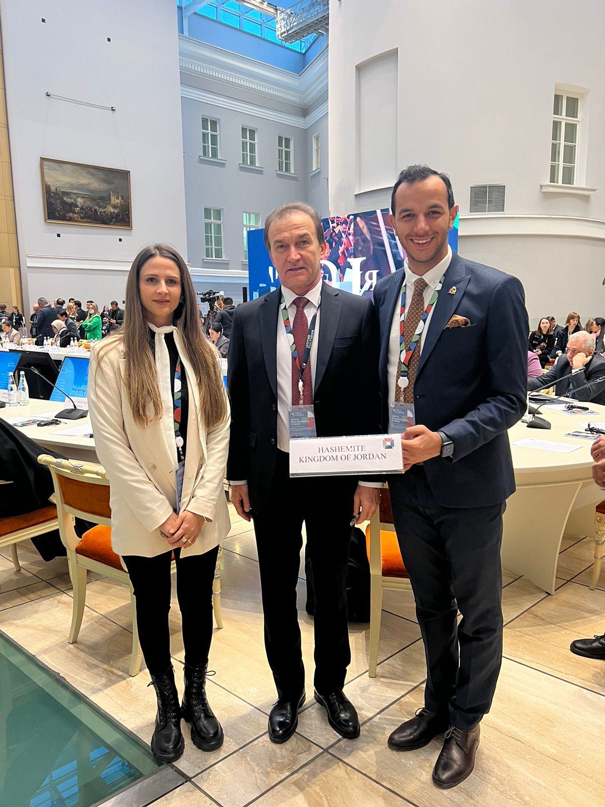تراس أمين عام وزارة الثقافة بالوكالة الدكتور ماهر نفش الوفد الأردني المشارك في أعمال "منتدى الثقافات المتحدة"، الذي يقام حاليًّا في مدينه بطرسبرغ الروسية، ويتناول عددًا من العناوين الثقافية الحالية والمستقبليّة.ويقام المنتدى بتنظيم من حكومة روسيا الاتحادية ووزارة الثقافة الروسية، وحكومة سانت بطرسبرغ، ويعد فرصة لعقد اللقاءات والحوارات، وترجمة للقضايا الهامة وإيجاد حلول استراتيجية، ومنها بيانات السياسة الروسية فيما يخصّ القضايا الإنسانيّة.وتركز فعاليات المنتدى على التعاون الدولي، والإثراء المتبادل بين الثقافات، وطرح الاختلافات عبر المشاورات للقوى الإبداعيّة.كما يوفّر المنتدى فرصةً للانتقال من المباحثات والمناقشات إلى اتخاذ القرارات، ويتم التطرق بشكل رئيسي للقضايا الثقافية الدولية مع إيلاء اهتمام خاص للمستقبل والدور المتميز للثقافة في حلّ النزاعات. وتركّزت محاور المؤتمر حول مواضيع التعلّم من التاريخ عبر الثقافة، الذكاء الاصطناعي: نقمة أم نعمة؟، الثقافة التقليدية بوصفها أساس بناء مجتمع متحضّر، ثقافة الأعمال، الثقافة الإعلاميّة، السينما، المسرح، المتاحف، والموسيقى.وعبّر الدكتور نفش عن شكره وتقديره لحكومة جمهورية روسيا الصديقة لتوجيه الدعوة إلى وزارة الثقافة الأردنية للمشاركة في أعمال المنتدى، مؤكّدًا في كلمته التي حملت عنوان "السيادة الثقافية كأساس لهوية الدولة"، أنّ الشعوب تعبّر عن ذاتها بالهوية التي تميزها عن غيرها، موردًا في ذلك آراء المفكرين والباحثين التي تقول بأنّ الدين واللغة والثقافة والإرث الحضاري والتاريخ والتراث المادي وغير المادي، من العلامات والخصائص التي تحدد هوية الأجناس البشرية. وقال الدكتور نفش إنّ الثقافة تسود مكونات الهوية، وتشكّل عنصرًا فاعلًا ومؤثرًا في تحديد هوية الدولة وحماية مكتسباتها وخصوصيتها، لتسهم في مسيرة التنمية الشاملة، انطلاقًا من أنّ الثقافة أداة من أدوات المعرفة والتفكير والتواصل وبناء حضارة إنسانية تساير التطور التكنولوجي والعلمي، لتستوعب التنوع الثقافي للأمم والشعوب، إدراكًا لأهمية التعايش والتسامح وقبول الآخر والانفتاح على الثقافات العالمية والتجارب الإنسانيه التي تعزز الأمن والسلام في العالم. وأكد الدكتور نفش أنّ الأردن، وبقيادة جلالة الملك عبد الله الثاني، سيستمر في دعم التعاون والتنسيق المشترك مع الدول الشقيقة والصديقة ومدّ جسور المعرفة والتواصل لتحقيق الانسجام الثقافي الإنساني وتطوير أدواته لتبقى الثقافة مصدرًا للتفاهم والحوار الإيجابي.