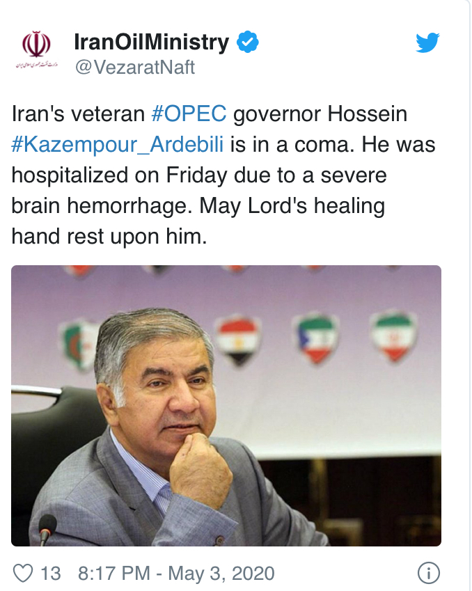 المندوب الإيراني لدى أوبك يدخل في غيبوبة إثر إصابته بنزيف دماغي- (تغريدة)
