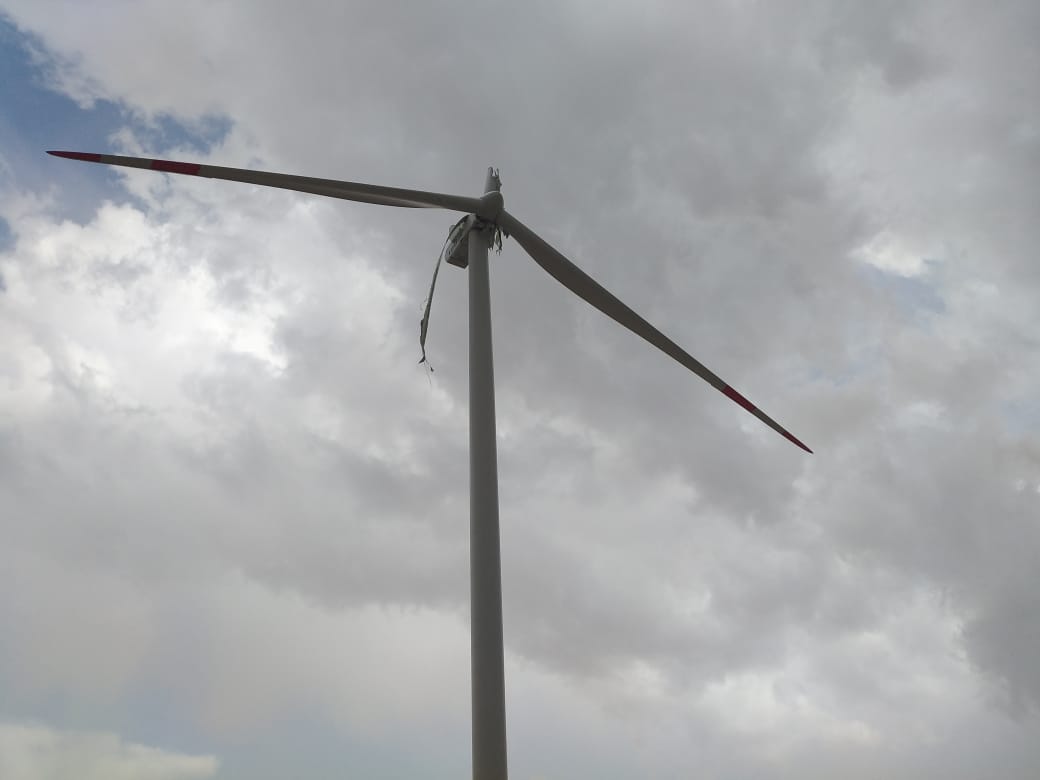 البرق يتلف مروحة توليد طاقة بالشوبك .