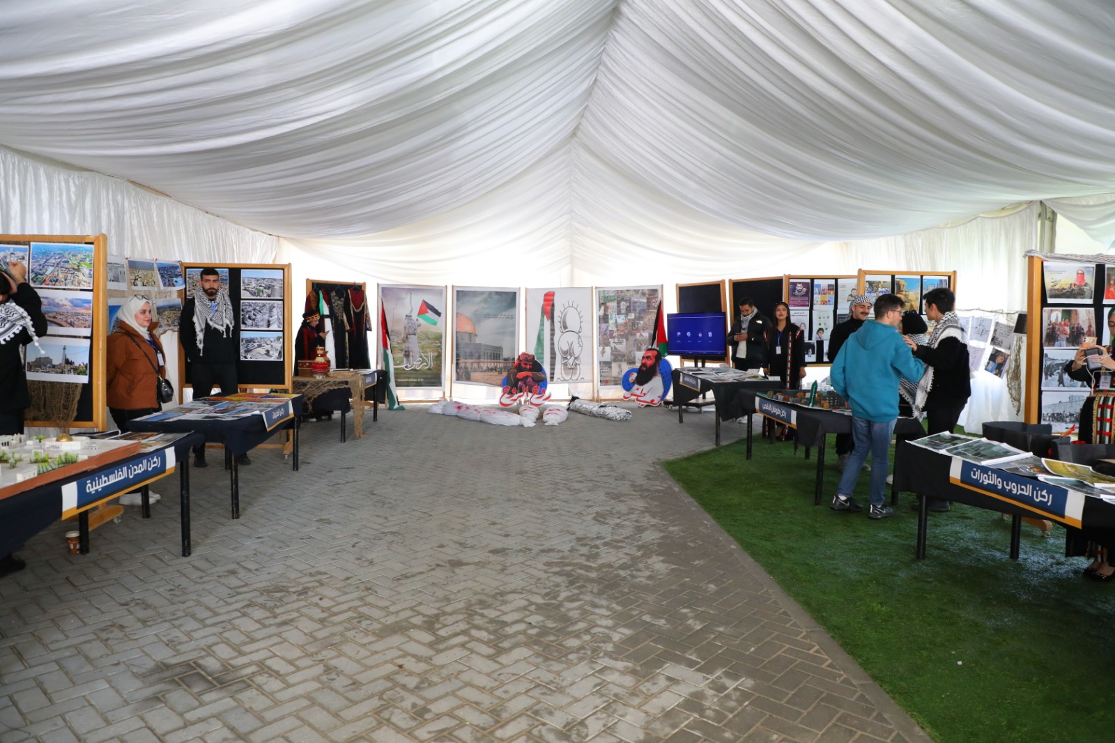 انطلاقاً من واجبنا تجاه القضية الفلسطينية ودعماً لصمود أهلنا في غزة العزة أقامت جامعة العلوم التطبيقية الخاصة فعالية "معرض طوفان الأقصى" بتنظيم من طلبة الجالية الفلسطينية بالجامعة وبحضور رئيس مجلس أمناء الجامعة الدكتور هيثم عبدالله أبوخديجة، ورئيس الجامعة والعمداء الأفاضل والعديد من أعضاء الهيئة التدريسية والإدارية وبمشاركة كبيرة من الطلبة.وقد ضم المعرض العديد من الأركان حيث عبر كل ركن منها عن مشاهد متكررة من ذاكرة الشعب الفلسطيني الصامد أهمها: ركن الهاشميون، ركن الشهداء، ركن السجون والمعتقلات، ركن طوفان الأقصى، ركن الحروب والثورات، ركن المخيمات، ركن المسجد الأقصى، ركن المقاطعة، ركن التراث، ركن المدن الفلسطينية، أصوات من غزة، وركن الأدب المقاوم، كما شاركت كليات الجامعة المختلفة وطلبتها في البازار الخيري الذي يعود ريعه لدعم أهلنا في غزة بالإضافة لإقامة العديد من الأنشطة التفاعلية لطلبة الجامعة.وتهدف مثل هذه الفعاليات لتوعية طلبة الجامعة وتذكيرهم بما يجري من أحداث ولا سيما بحلول العام 2024 لتكون مواقفهم دائماً داعمة ومؤازرة للقضية الفلسطينية، بالإضافة لمشاركتهم أمنياتهم لفلسطين بالعام الجديد، وقد لاقت الفعالية بحمد الله تجاوباً كبيراً من الطلبة والذي يدل على حجم وعيهم ومسؤوليتهم تجاه الأمة العربية والإسلامية وتحديداً فلسطين الأبية.