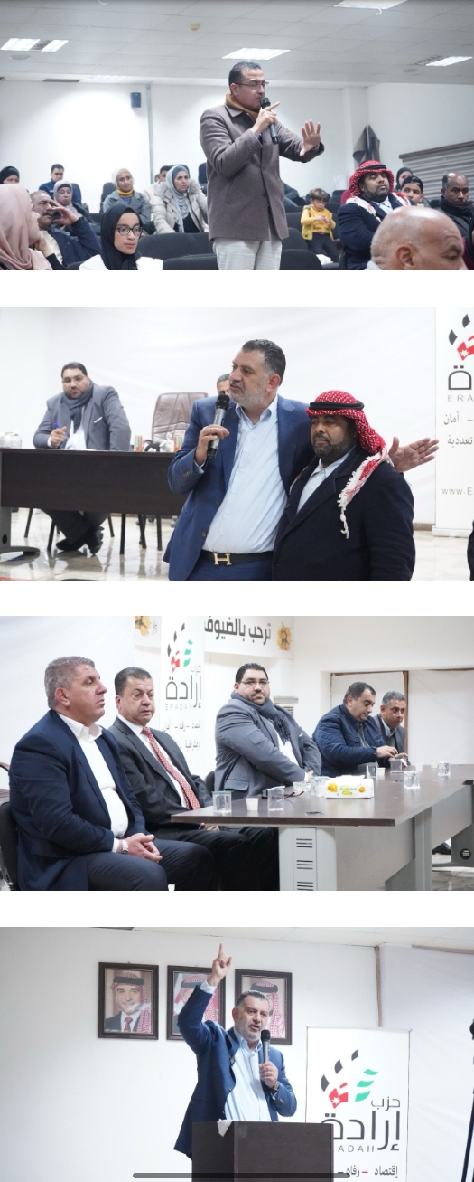 وتحدث في اللقاء رئيس مجلس فرع حزب إرادة في محافظة البلقاء أحمد الفاعوري، مؤكدًا أن حزب إرادة أصبح منارة سياسية واجتماعية يشار لها بالبنان على طريق الإصلاح السياسي المنشود، مشددًا أهمية وجود فروع ومكاتب للحزب في المحافظات والألوية؛ لتحقيق طموحات المناطق وخدمتها، كما أنها وسيلة جذب المشاركة السياسية من خلال نشر مبادئ الحزب ونهجه السياسي.