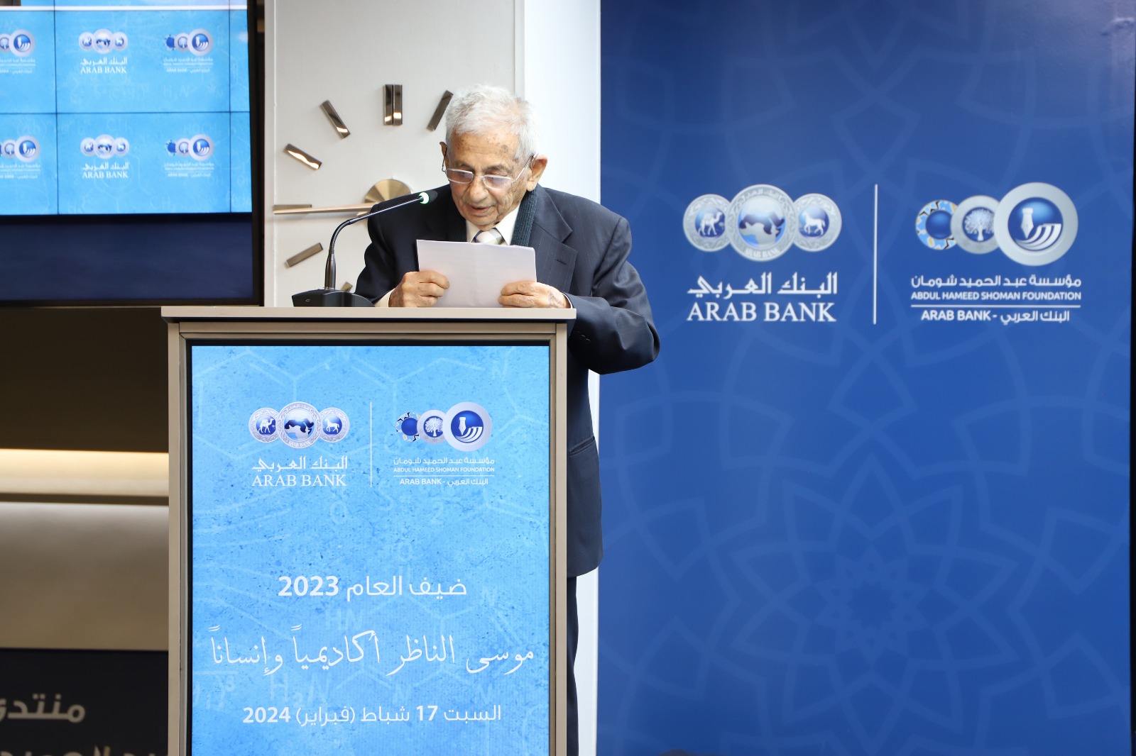عمان 17 شباط - كرمت مؤسسة عبد الحميد شومان ضمن ندوة "ضيف العام 2023 "؛ اليوم، العالم الكيميائي والأكاديمي الدكتور موسى الناظر، تحت عنوان " موسى الناظر أكاديميا وإنسانا"، بحضور العديد من الأكاديميين والمثقفين والمعنيين.