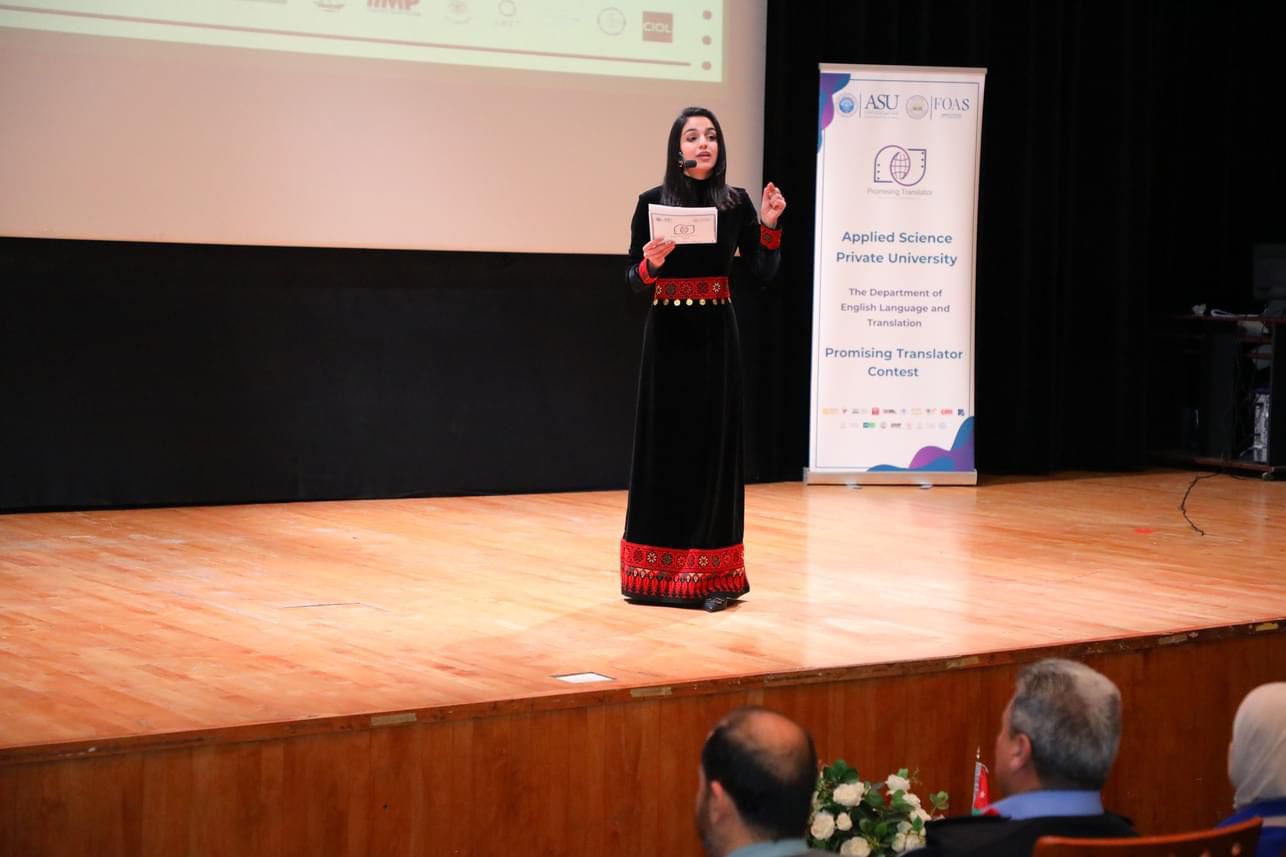 ...نظم قسم اللغة الإنجليزية والترجمة/ كلية الآداب والعلوم الإنسانية في جامعة العلوم التطبيقية الخاصة مسابقة المترجم الواعد بنسختها السادسة (2024)، وقد حظيت المسابقة بمشاركة فاعلة من أكثر من 500 طالب وطالبة من مختلف مدارس المملكة الأردنية الهاشمية.وتضمن حفل الافتتاح تعريف الطلبة بالجامعة بمختلف تخصصاتها ومرافقها، وأقيم على هامش الحفل ورشة عمل لمشرفي المدارس المشاركة بعنوان: “Translating Arab Popular Proverbs (through a Jordanian Lens)”. قدمها الأستاذ الدكتور محمد فرغل.عقد الحفل الختامي للمسابقة الذي تم فيه الإعلان عن الفائزين بالمسابقة مع تقديم منح دراسية تصل إلى 100% لدراسة تخصصات قسم اللغة الإنجليزية والترجمة في الجامعة، حيث كان هناك 10 منح مقدمة لطلبة المدارس بالإضافة لتكريم عدد من الفرق المشاركة بكأس التطبيقية تقديراً لتميزهم.وكانت المراكز الفائزة بالمنح الدراسية كالتالي:1. بيسان محمد عيال عواد منحة 100% - أكاديمية ومدارس الاحتراف الدولية.2. يزيد محمد البدور منحة 75% - المدارس العمرية - قسم البنين.3. ايلينا يوسف الشيخ منحة 50% - أكاديمية الرواد الدولية.4. يارا أمجد الخوالدة منحة 45% - مدارس العروبة الثانوية.5. سارة محمد الجوابرة منحة 45% - أكاديمية بناة الغد.6. فرح ماهر يامين منحة 45% - أكاديمية نورث سيتي.7. أحمد محي الدين منصور منحة 45% - مدرسة الملك عبد الله الثاني للتميز/ الزرقاء - قسم البنين.8. اعتدال خليل الطاهر منحة 45% - مدرسة الملك عبد الله الثاني للتميز/ الزرقاء - قسم الإناث.9. بانا مراد حلاوة منحة 45% - روضة ومدارس المبادىء العلمية.10. ليث عمر العابد منحة 45% - مدارس أكاديمية المجددون الدولية.- وكانت المدارس الخاصة الأعلى تجميعاً حسب الترتيب:1. مدرسة الراهبات الفرانسيسكانيات.2. رياض ومدارس جامعة الزرقاء.3. أكاديمية الحضارات العالمية.- أما المدارس الحكومية الأعلى تجميعاً حسب الترتيب:1. مدرسة الملك عبد الله الثاني للتميز/ سحاب.2. مدرسة الملك عبد الله الثاني للتميز/ السلط.3. مدرسة سحاب الثانوية الشاملة للبنات.- أجمل خط ذكور:عمر محمد الأمين رمضان - مدارس الفارس الذكي.- أجمل خط إناث:سلمى أنس العملة - مدارس المنهل العالمية.