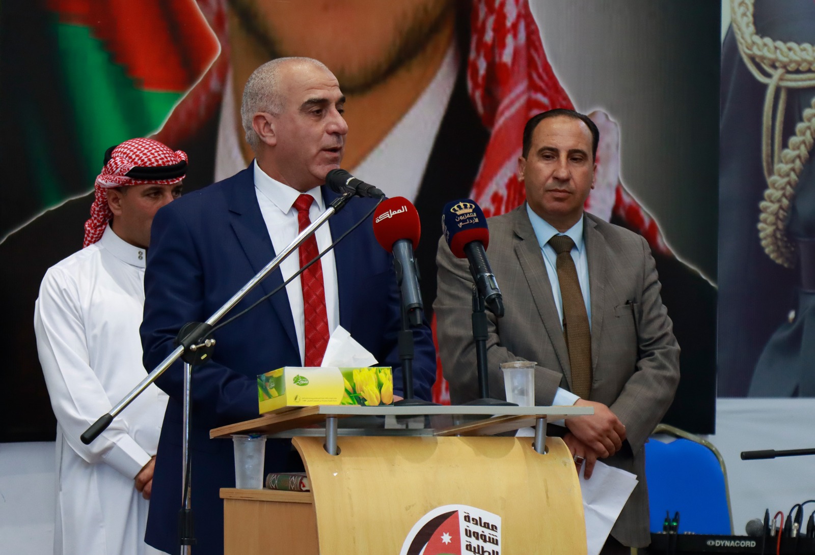 تحت رعاية رئيس مجلس أمناء جامعة الحسين بن طلال الاستاذ الدكتور عبدالرحيم الحنيطي، وبحضور محافظ معان عطوفة السيد فيصل المساعيد، ورئيس جامعة الحسين بن طلال الأستاذ الدكتور عاطف الخرابشة، ورئيس الجامعة المؤسس الأسبق الأستاذ الدكتور عادل الطويسي، أقيم على مدرج عمادة شؤون الطلبة في الجامعة اليوم الحفل الرئيسي بمناسبة مرور 25 عاماً على تأسيس جامعة الحسين بن طلال. وفي كلمته قال رئيس مجلس أمناء جامعة الحسين بن طلال الأستاذ الدكتور عبد الرحيم الحنيطي أن جامعة الحسين بن طلال وهي تحتفل بيوبيلها الفضي اليوم، لتؤكد على تحقيق رؤى جلالة الملك عبدالله الثاني ابن الحسين في السير بالعملية التعليمة والارتقاء بها، وهي الجامعة الأولى في عهد جلالته. وأضاف الدكتور الحنيطي أن جامعة الحسين بن طلال ومن خلال تضافر جهود أبناءها قد حققت إنجازات كبيرة محلية وعالمية لم تتحقق لولا العمل بروح الفريق الواحد والمخلص لها. وأن جامعة الحسين بن طلال لن تدخر جهداً للحفاظ على مكانتها وعكس رؤيتها بتقديم تعليم عال يرتقي بخريجين متميزين يرفدون سوق العمل بخبراتهم وعلمهم. وتحدث رئيس جامعة الحسين بن طلال الأسبق معالي الأستاذ الدكتور عادل الطويسي في كلمته عن التحديات الكبيرة التي واجهت مرحلة تأسيس الجامعة، وأنها لولا الدعم الملكي الهاشمي الكبير، وتضافر جميع أبناءها العاملين وتكاتفهم، ودعم أبناء المجتمع المحلي المحيط بها لم تكن لترتقي لما وصلت إليه من تميز ومكانة رفيعة بين الجامعات الأردنية والعربية.كما تحدث الدكتور الطويسي عن الخطط والاستراتيجيات التي وضعت لتأهيل الجامعة في بداياتها من العمل على الحرم الجامعي الدائم، وخطط الابتعاث لرفد التخصصات بالمؤهلات العلمية اللازمة، واستحداث تخصصات تستجيب للبيئات الغنية التي تزخر فيها المحافظة.وفي كلمته رحّب رئيس جامعة الحسين بن طلال الأستاذ الدكتور عاطف الخرابشة بالسادة الحضور في رحاب الجامعة أولى مكارم جلالة الملك عبدالله الثاني ابن الحسين المعظم في باكورة حكمه الممتد بإذن الله. رافعاً صادق التهاني والتبريكات لجلالة الملك عبدالله الثاني ابن الحسين والذي رأى جلالته ان في تأسيس هذه الجامعة نافذة مهمة لبناء مجتمع من المعرفة وتعزيز القدرات البشرية في محافظة معان العاصمة الأولى للمملكة الأردنية الهاشمية، ولسمو ولي العهد الأمير الحسين بن عبدالله الثاني قرة عين عبدالله وعضيده.وقال الدكتور الخرابشة "اننا في جامعة الحسين بن طلال ونحن نبدأ اليوم فعاليات الاحتفال باليوبيل الفضي للجامعة، تعمدنا ألا تتحول هذه المناسبة الى مجرد لفت نظر لقيمة جامعة ضمت في صفوفها على مدى مسيرتها العديد من رموز العلم، والتي قادت حركة التنوير في محافظة معان والوطن، أو عرض لحكايات عن بطولات وعطاء قدمته اجيالا وراء أجيال مع أن كل هذا يستحق ان يعرفه الجيل الحالي، الذي يستلم الراية ويستكمل المهمة، اننا نريد ان نجعل من هذا الاحتفال نقطة انطلاق جديدة نحو القادم، وأن يقدم منتسبي هذه الجامعة رؤيتهم في واقعهم الحالي، ويتلمسوا تقديم الاجابات القادرة على أن تنهض بدور الجامعة ومشاركتها في دورها العلمي والريادي".وتحدث الدكتور الخرابشة عن التطور الكبير والهائل في مجتمع المحافظة حيث عملت الجامعة على رفع نسبة الحاصلين على الدرجة الجامعية الاولى والدراسات العليا في محافظة معان وباديتها، والتقليل من نسبة البطالة وتوفير فرص العمل لأبناء محافظة معان الذين وصلت نسبتهم حوالى 85 بالمائة من العاملين في الجامعة. وارتفاع عدد أعضاء الهيئة التدريسية مقارنة بالسنوات السابقة، حيث ارتفع عددهم بنسبة 79 %، في حين ارتفع عدد الطلبة بنسبة ٧٥% حيث وصل عدد الطلبة في هذه السنة الدراسية الى ما يقارب اثنا عشر ألفا وخمسمائة طالب وطالبة.كما أكّد الخرابشة أن جامعة الحسين بن طلال التي كانت هدية الهاشميين لأبناء المحافظة، ستضل الحاضنة للعلم والمعرفة وقاطرة التنمية في هذه البقعة الأصيلة من المملكة، والتي ا
