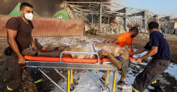 محاصر تحت سيارة، غير قادر على الحركة، ملطخ بالدماء، كان يبدو قتيلا.. إنها قصة صورة التقطها مصور رويترز محمد عزاقير لأحد ضحايا التفجير الهائل الذي ضرب مرفأ بيروت الثلاثاء، موقعا عشرات القتلى ومئات الجرحى.