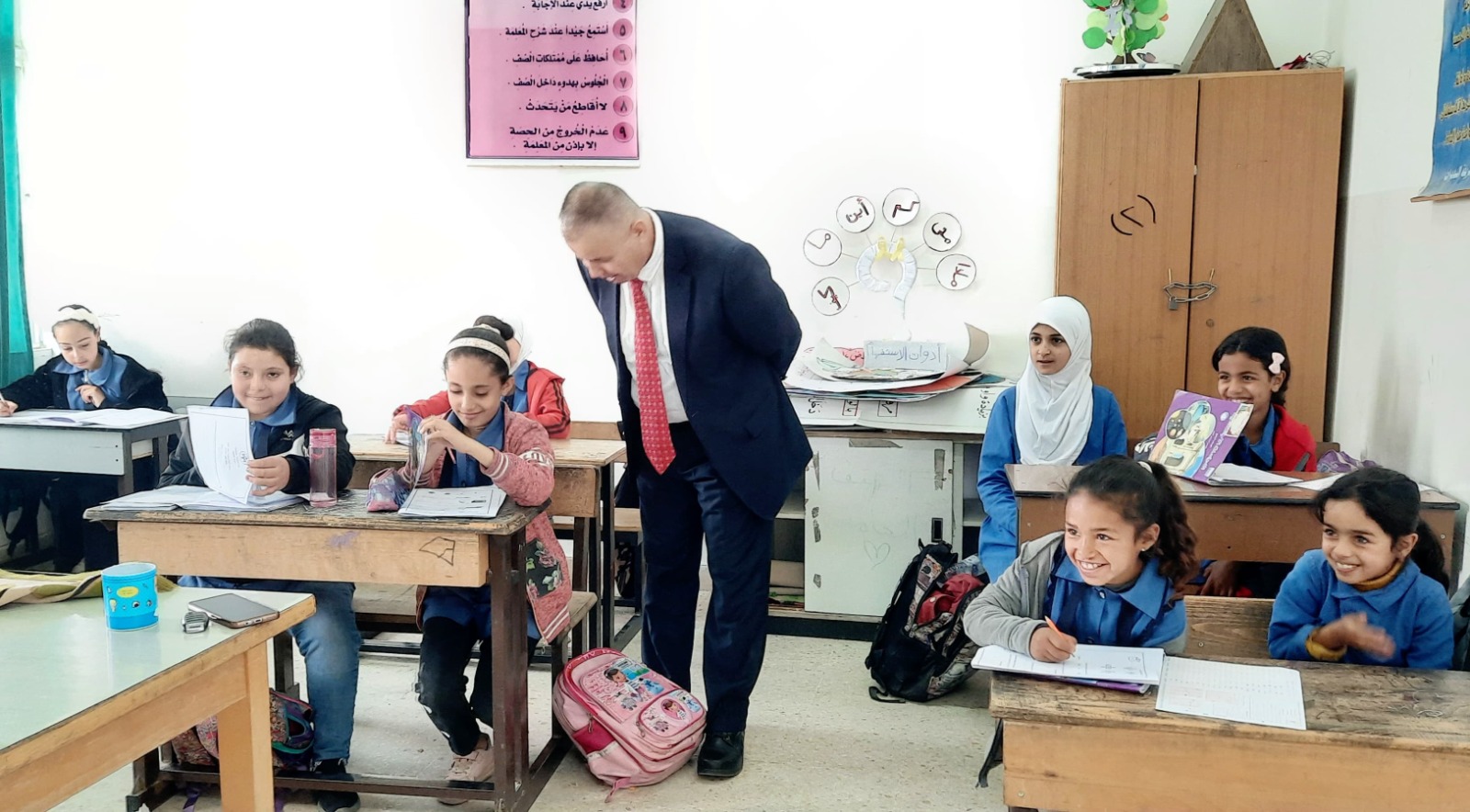 من جانب آخر تفقد مدير الشؤون التعليمية الدكتور بكر الذنيبات ومدير الشؤون الادارية والمالية السيد احمد المحادين يرافقهم المحرر الصحفي السيد عبد الرحمن المجالي اقامة مجريات الاختبار الوطني للصف الرابع الاساسي وذلك في مدرسة الربة الاساسية الاولى المختلطة ومدرسة ذات النطاقين الاساسية ومدرسة الروضة الاساسية المختلطة ومدرسة الربة الاساسية الثانية المختلطة و مدرسة حي مشهور الاساسية المختلطة ومدرسة الخنساء الاساسية المختلطة ومدرسة السماكية الثانوية المختلطة طلعوا خلالها على واقع سير الامتحان وآلية تطبيقه وآلية تفعيل بطاقة الماسح الضوئي لدى الطلبة ومدى التزام المدارس بتطبيق الاختبار .