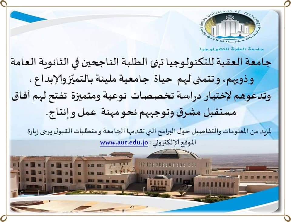 للإطلاع والتفاصيل :- http://www.aut.edu.jo/ar/Default.aspx