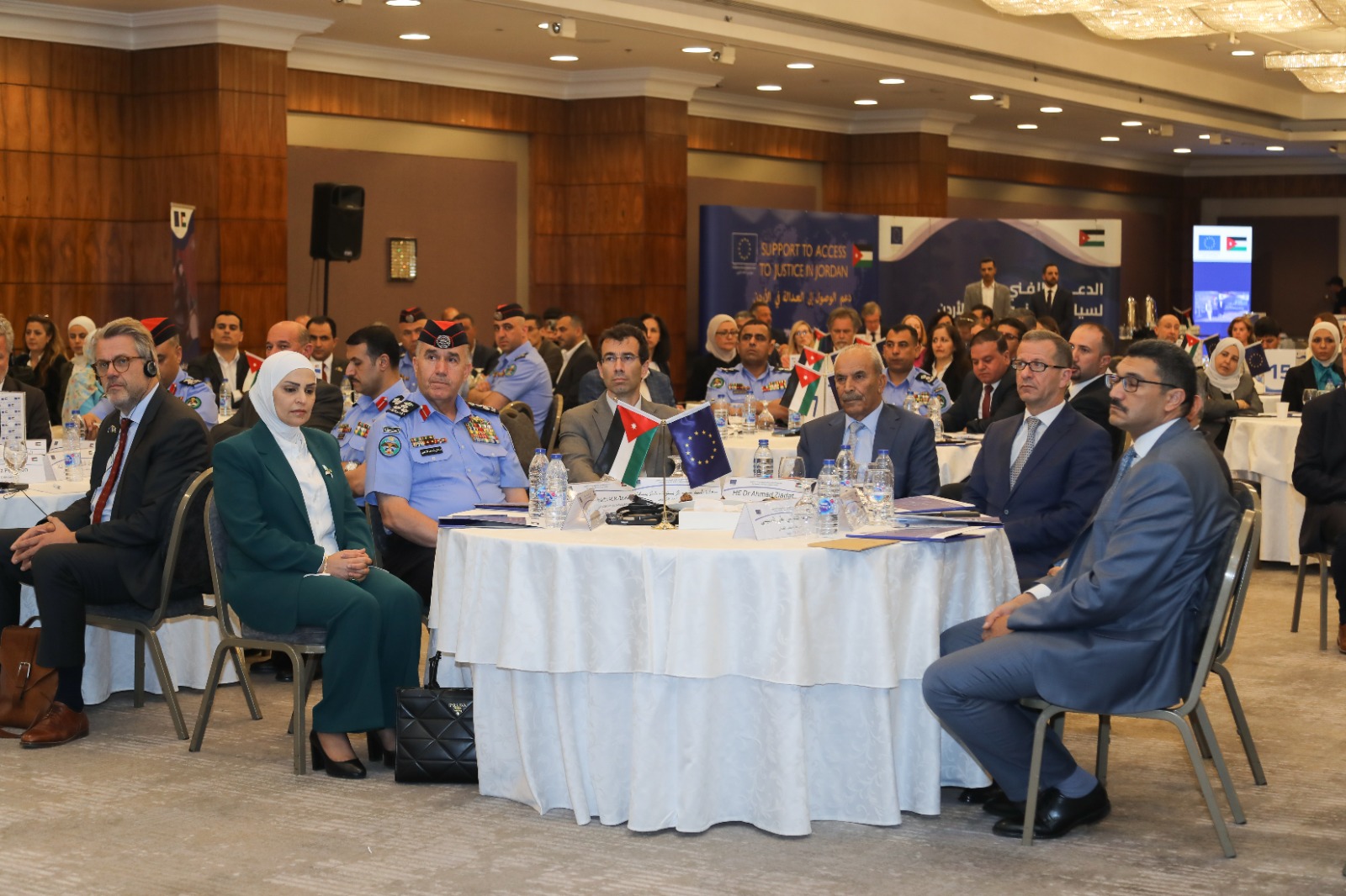 من جهته قال سفير الاتحاد الأوروبي أن الاتحاد الأوروبي يساند مؤسسات سيادة القانون في الأردن لاكثر من عقد من الزمن وذلك من خلال برامج متتالية لدعم الموازنة وحققت العديد من الإنجازات الملموسة كتدريب كوادر قطاع العدالة والكوادر الأمنية أضافة لدعم تطوير البنية التحتية في بعض المحاكم ومرافق الإصلاح ، وأضاف انه من خلال المشروع سيتم مواصلة دعم قطاع العدالة لتيسير سبل الوصول الى العدالة.