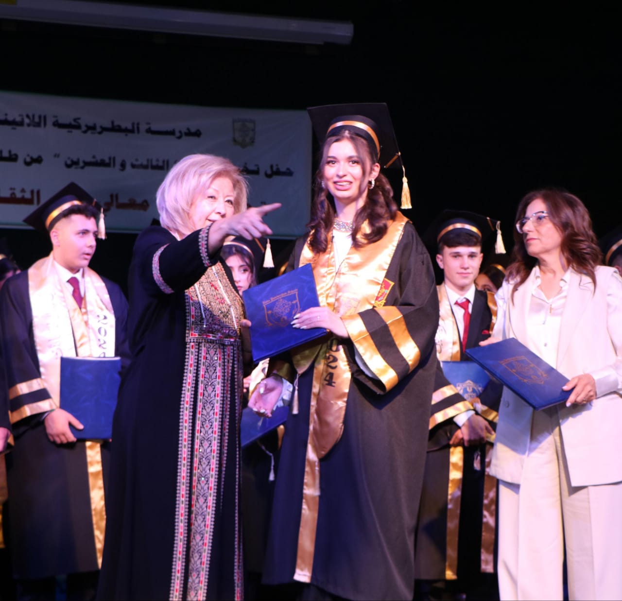 تحت رعاية معالي وزيرة الثقافة السيدة هيفاء النجار ، وسعادة النائب هيثم الزيادين ، ومساعد محافظ الكرك السيد خالد الجعافره مندوباً عن محافظ محافظة الكرك ، وبحضور عطوفة مدير التربية والتعليم لمنطقة الكرك الاستاذ سامر المجالي أقامت مدرسة البطريركية اللاتينية الثانوية المختلطة / الوسية ( نجمة الجنوب ) في الكرك، حفل تخريج الفوج 23 للطلبة في مركز الحسن الثقافي .رحبت مديرة المدرسة السيدة الهام حدادين بوزيرة الثقافة والحضور الكريم ، موكدةً أن المدرسة تسعى لتخريج جيل مثقف مميز من خلال الأنشطة المدرسية اللامنهجية ، وان طلبة المدرسه في هذا العام قد حصدوا المراكز الاولى في الاختبارات الوطنية على مستوى المملكة ، والمراكز الاولى في مسابقات الموسيقى والعزف والشطرنج على مستوى اقليم الجنوب .وفي كلمةً القتها وزيرة الثقافة قالت فيها ان هذه المدينة الغالية على قلبها خرجت للاردن الحبيب الرجال في كافة المناصب من جنود واقتصاديون ورجال اعمال وقادةً ، موكدةً على الطلاب والطالبات الخريجين وامل المستقبل ان يتحدثوا عن احلامهم من العقل حتى يستطيعون تحقيقها في هذا الوطن للاسهام على اعلاء بنائه ِ .وتحدث المجالي ان المدرسة تسعى لزرع روح الابتكار لدى الطلبة لتخريج كوكبة من الطلبة المتميزين ، وتطبيق أحدث الأساليب والطرق في التدريس لإيصال المعلومة للطالب مؤكداً حرص مديرية التربية والتعليم لمنطقة الكرك على دعم المتفوقين والمبدعين وعموم الطلبة بما يصب في مصلحة رفعة مجتمعنا.واشتمل الحفل على استعراض دخول مواكب الخريجين ، وفقرةٍ فلكلورية شعبية ودبكة شعبية تراثية ، قدمها عدد من طلبة المدرسة ، إضافة إلى فقرة غنائية وطنية و تسليم الراية من طلبة الثانوية العامة إلى طلبة الصف الأول ثانوي متمنين عليهم الحفاظ على العهد ، وألقى عدد من الطلبة الخريجين كلمات عبروا فيها عن فرحتهم بهذا التخرج ، ويذكر ان من قامت بتقديم الحفل المعلمة الفاضلة سهيلا الحباشنة .وفي نهاية الحفل الذي حضرهُ أولياء امور الطلبة وعدداً من المجتمع المحلي ، وزع راعي الحفل الشهادات التقديرية على الطلبة الخريجين.