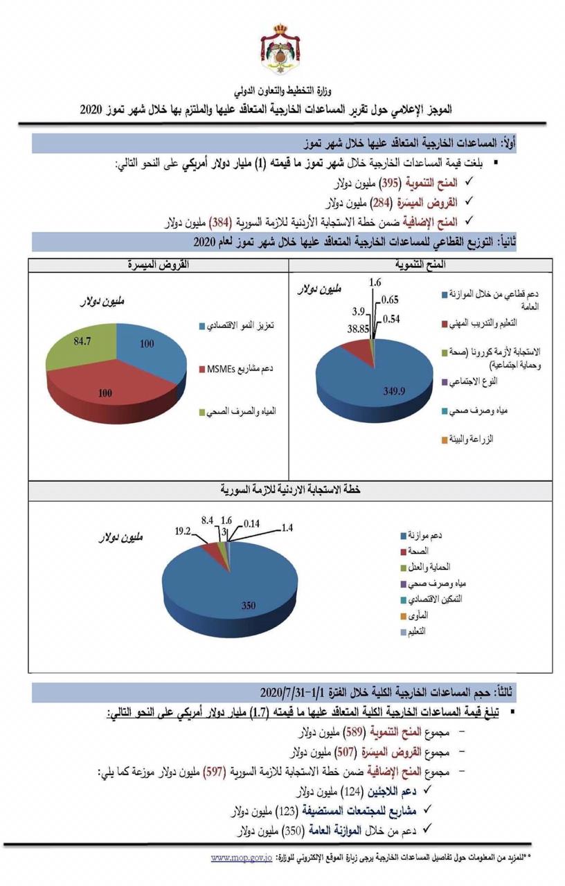 الموجز الإعلامي حول تقرير المساعدات الخارجية المتعاقد عليها والملتزم بها خلال شهر تموز(يوليو) 2020.