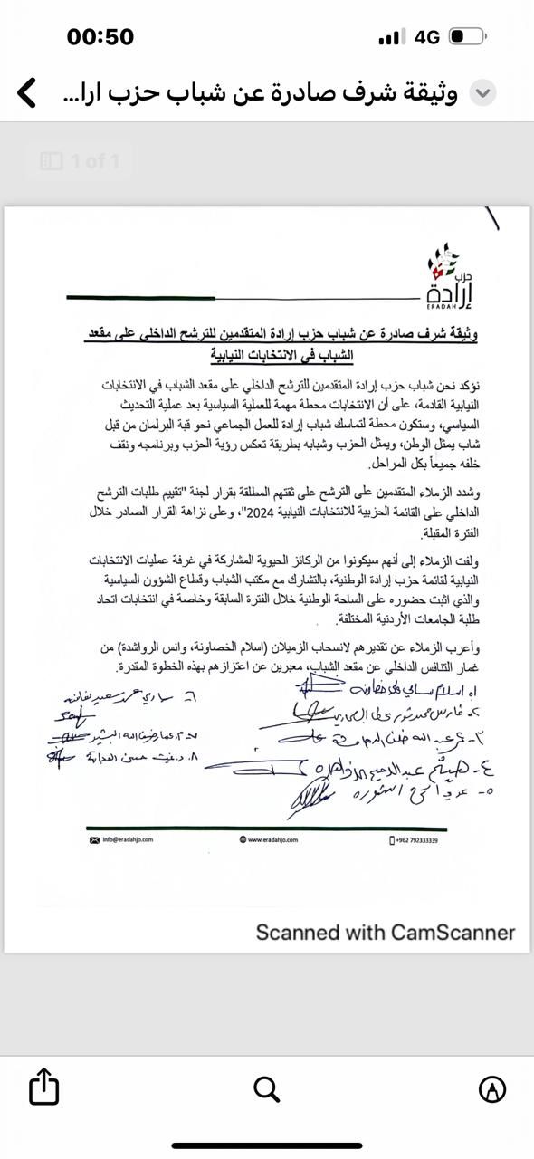 شباب حزب إرادة المتقدمين على مقعد الشاب على القائمة الحزبية يصدرون وثيقة شرف قبيل صدور القائمة الحزبية