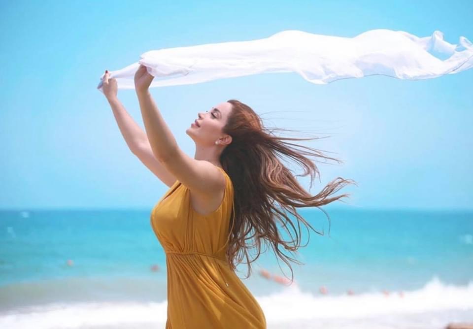 حيث شاركت طافش جمهورها اطلالة بحرية جديدة بثوب أصفر اللون مع تعليق جاء فيه: