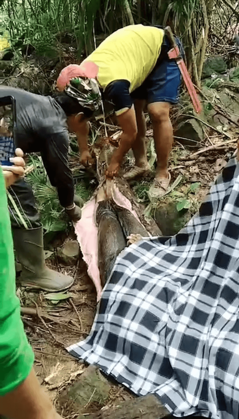 وقال قائد الشرطة المحلية إيدول، «بعد فترة وجيزة، وجد الزوج ثعباناً على بعد حوالى عشرة أمتار من الطريق. وكان الثعبان لا يزال على قيد الحياة». وأوضح إيانغ، وهو مسؤول في القرية، أن الزوج شعر بالارتياب بعد أن لاحظ بطن الثعبان «منتفخاً للغاية». ثم دعا قرويين لمساعدته في فتح جوف الحيوان، حيث عثروا على جثة زوجته.