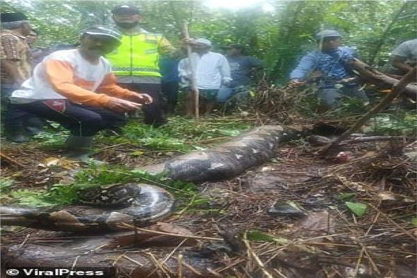 شاهد بالصور..ثعبان ضخم يبتلع امرأة بإندونيسيا