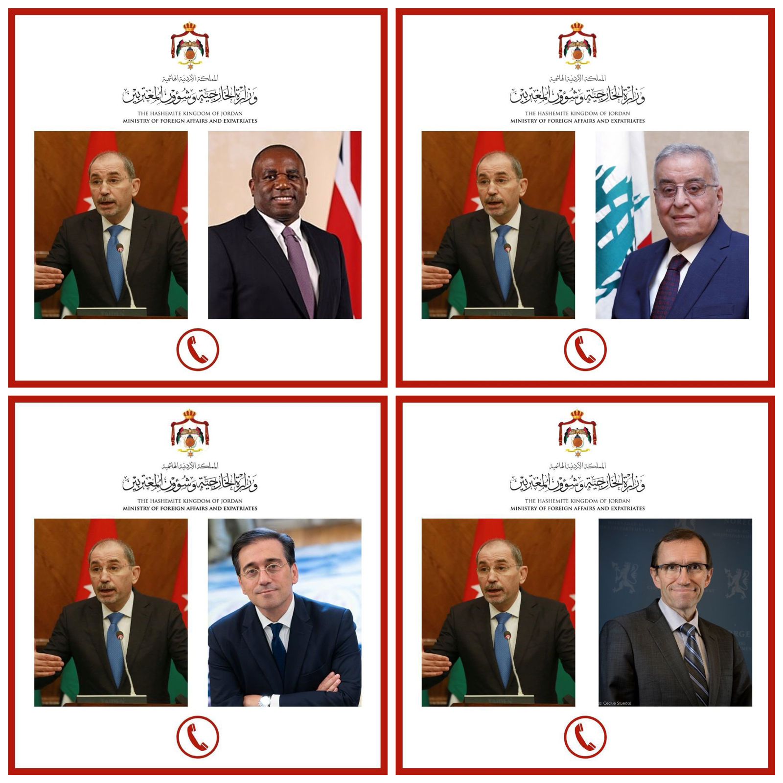 أجرى نائب رئيس الوزراء ووزير الخارجية وشؤون المغتربين أيمن الصفدي، اليوم الإثنين، محادثات هاتفية مع وزراء خارجية إسبانيا خوسيه مانويل ألباريس، والنرويج إسبن بارث إيدي، وبريطانيا ديفيد لامي.وبحث الصفدي مع نظرائه التصعيد الخطير الذي تشهده المنطقة، وتداعيات اغتيال رئيس المكتب السياسي لحركة المقاومة الإسلامية في فلسطين (حماس) إسماعيل هنية، والذي يدينه الأردن جريمة تصعيدية تدفع باتجاه تفجر الأوضاع إقليميا.وأكد الصفدي أن وقف إسرائيل عدوانها على غزة فورا، ووقف خروقاتها للقانون الدولي، يمثلان الخطوة الأولى نحو خفض التصعيد الذي يهدد الأمن والسلم الإقليميين والدوليين.وشدد الصفدي على ضرورة وقف عدوانية الحكومة الإسرائيلية، واتخاذ خطوات عملية ومواقف واضحة تحول دون فرض رئيس الوزراء الإسرائيلي والوزراء المتطرفين والعنصريين في حكومته أجندتهم التصعيدية، والحرب على المنطقة.وحذر الصفدي من خطورة استمرار التصعيد على المنطقة كلها، مشددا على أن أمن المنطقة سيبقى مهددا ما لم يُفرض على إسرائيل وقف عدوانها على غزة واستباحتها لحقوق الشعب الفلسطيني وخروقاتها الفاضحة للقانون الدولي.وبحث الصفدي مع نظرائه عددا من القضايا الثنائية والإقليمية.إلى ذلك، تلقى الصفدي أيضا اتصالا من وزير الخارجية اللبناني عبدالله بو حبيب، جرى خلاله بحث الأوضاع في المنطقة.وأكد الصفدي وقوف الأردن إلى جانب لبنان الشقيق واستقراره وسيادته وسلامة مواطنيه ومؤسساته ورفض أي عدوان إسرائيلي عليه.وثمن بو حبيب مواقف الأردن التاريخية والثابتة إلى جانب لبنان.