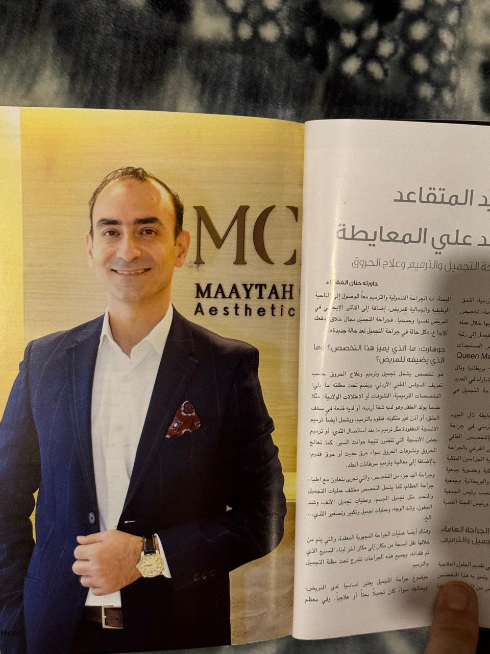 قبل الحديث عنهم لابد من التحدث عن الانجازات الطبية في الغرب وفي الاردن وما تحدثت عنه الصحافه كذلك على مستوى عالمي وهناك انجازات طبيه أجريت في الاردن لم يكن تركيز اعلامي عليها الا ان الحقيقة لابد أن تظهر ويسخر بها العرب عامة والاردنيين خاصه ولما لا واحد أبطال قصتنا طبيب حصل على وسام ملكي انهم ثلاثة اشقاء خرجوا من كنف أسرة اردنية مكافحة، الوالد اطال الله في عمره كان عسكرياًً بامتياز، مأثره في أسرته موصوفة بالانضباط وتحمل المسؤولية، والقيادة، والأم الانسانة،القديرة، المثابرة، التي واصلت الليل بالنهار ليتمكن ابنائها من التحصيل والانجاز، ليصبحوا من الداعمين والقامات الطبية الأردنية الرفيعة المتميزة في اختصاصاتهم وانجازاتهم الطبية والإنسانية شغف الشقيقان: د. محمد و د خالد علي المعايطة بعالم جراحة التجميل والترميم، د. محمد -الإبن البكر- فقد تخصص في جراحة الوجه والفكين، على مدى عشرين سنه في بريطانيا توّّجها بمسيرة مشهودة بالإنجازات الطبية، والبحوث وبراءات الاختراع، وجوائز منها جائزة الملك عبد الله الثاني للتميز علمياًً، والثقة الملكية لعلاج العائلة الهاشمية في الأردن.اما الدكتور خالد التحق بالخدمات الطبية الملكية وانتهت خدماته برتبة عقيد بخبرة طويلة، ثم ميزها بالتخصص في الجراحات المجهرية الدقيقة، وحقق بصمات وانجازات موصوفة بالمجال، اما وبهذه الصفحات التي خصصتها مجلة «جوهارت لموضوع الساعة، ومقصد الباحثين والباحثات عن الجمال والكمال وهو جراحة التجميل، انها مسيرة وانجازات وابداعات الشقيقان الجراحان و الاخت طبيبة الاطفال بهذا الحوار الجميل